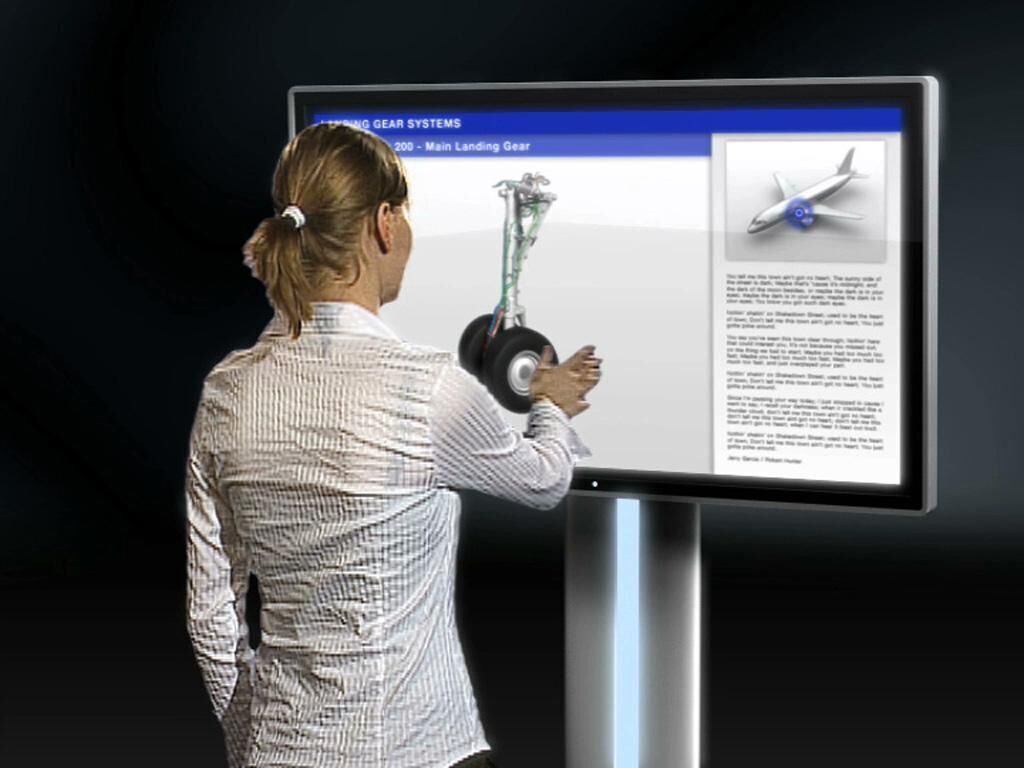Was bedeutet Echtzeit-3D und wo findet sie Verwendung? Da viele Leute noch nicht wissen, was sie sich darunter vorstellen können, wurde dieses Video entwickelt, um einige Einsatzbereiche der Technik verständlich zu machen. Es handelt sich um Anwendungen, die über einen Touchscreen dargestellt und bedient werden. Die Tatsache, dass man durch die in Echtzeit dargestellten 3D-Modelle keiner vorgefertigten, linearen Präsentation folgen muss und somit nach seinem Gutdünken in die Materie eintauchen kann, wird dadurch dargestellt, dass die Objekte, die vorher nur auf dem Bildschirm zu sehen waren, plötzlich mitten im Raum stehen. Somit wird das Fahrwerk eines Flugzeuges, welches zuerst nur am Bildschirm betrachtet und gedreht wurde, plötzlich zum realen Modell, welches der Benutzer in jede beliebige Richtung drehen und um welches er herumlaufen kann. Der Fahrsimulator eröffnet die Möglichkeit des Eintauchens in die virtuell erstellte Stadt, somit fährt man plötzlich durch die Stadt, statt ""nur"" vor einem Touchscreen zu sitzen.
