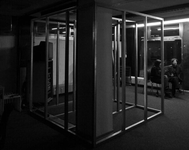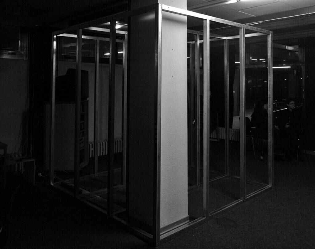 Ein Modulobjekt aus Metall wird so in den Ausstellungsraum eingebracht, dass die Säule, welche die Decke unterstützt, sich als in die Konstruktion des Objekts eingefügt erweist. 15 Neon-Lampen – jede 120 cm groß – sind an der Decke in fünf parallelen Linien platziert. Jede Lampenstrecke geht erst nach dem Erlöschen der vorherigen an und bewirkt so eine ständige Wellenbewegung der Beleuchtung von hinten nach vorn. Die Wechselwirkung der geschaffenen Beleuchtung mit dem integrierten Objekt restrukturiert den Ausstellungsraum.