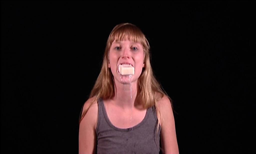 „Delusion” kündet von meinem Mord an der gesamten Kunst, also dem Mord an allen Bildern. „Ich habe etwas ganz Schreckliches getan. Ich habe die gesamte Kunst erschossen, und mich selbst.” Als Bestrafung a priori oder Selbstkasteiung wasche ich mir unter ständiger Wiederholung dieses Satzes selbst den Mund mit Seife aus, bis zur Grenzüberschreitung des für mich körperlich Ertragbaren.