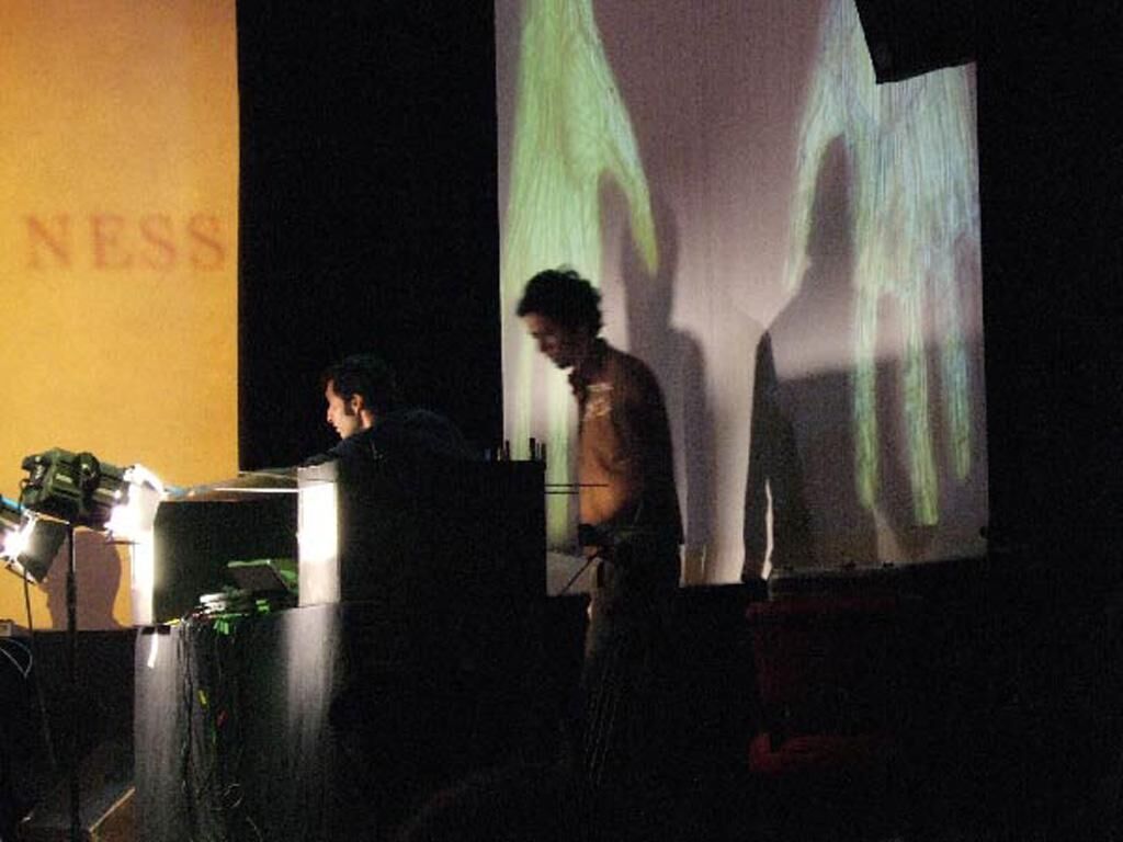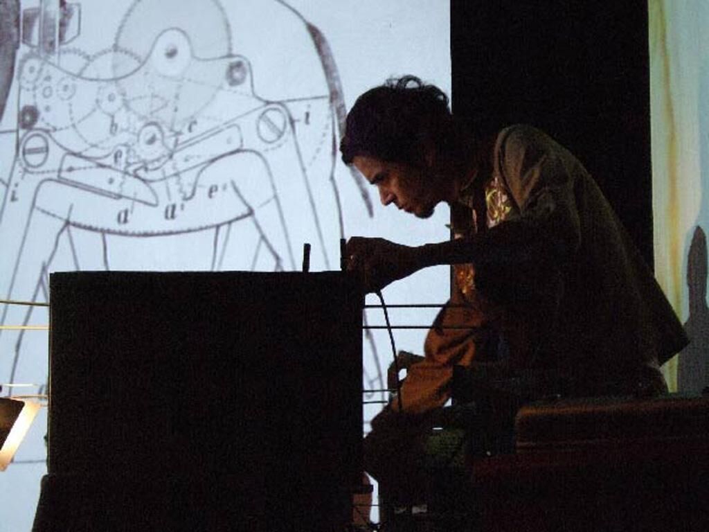 Im Sinne jener Vision auf die Phänomene des elektromagnetischen Feldes zwischen dem 18. und 20. Jahrhundert sowie die Entwicklung der Bildmaschinen aus den letzten 2000 Jahren nutzen Juan Orozco und Luis Negrón das Videomedium, um live auf der Bühne geisterhafte und skurrile sinnbildliche Erscheinungen aus dem Unterbewusstsein zu schaffen. Wie mit einem Musikinstrument kann ad hoc mit verschiedensten Elementen in einer Art elektronischen Laterna Magica durch die Gesten der Videomarionettenspieler improvisiert werden. Ausgehend von einem stets wachsenden Archiv an Bildmaterial (analoger und digitaler Natur), werden die verschiedenen Archivelemente neu kombiniert, so dass die Borges Babels Bibliothek hier eine visuelle Erscheinung zu suchen scheint. Das Telefante, was ebenfalls als ein Instrument verstanden werden kann, muss wie jedes Musikinstrument auch gelernt und geübt werden. Ein immer wieder neu entstehendes Improvisorium an Werkzeugen schafft eine eigene Welt des Dazwischen. Diese Welt, als sich wandelnde Konfiguration, wird für jedes audiovisuelle Konzert stets neu erdacht. Es handelt sich dabei um die Suche nach einer eigenen Welt der Bildkomposition im Rahmen einer musikalischen Performance. Als Zuschauer kann man die Entwicklung dieser Suche direkt auf der Bühne erleben und bekommt somit reichlich Raum für eigene Interpretationen, ohne einen bestimmten Diskurs diktieren zu wollen. Was ist Telefante? Würde man sich eine Beschreibung zum Arbeitsmodell von Telefante vorstellen, müsste von einem eher flussartigen Modell ausgegangen werden. Genauer gesagt könnte man - analogerweise - sagen, das Modell ähnele dem elektromagnetischen Modell. Wenn von Elektromagnetismus die Rede ist, wird hier an jene “Vision” aus dem Ende des 18. bis zum Anfang des 19. Jahrhundert gedacht. Das Interesse von Telefante ist, diese Vision zu erforschen. Nicht nur bei ihren Performances lässt sich das feststellen, sondern schon von dem Moment an, als Telefante als Projekt ins Leben gerufen wurde. Elektromag- netisches Feld oder Fluktuation hat jede kreative Phase beeinflusst, sogar von der ersten “Erfindung” desselben Telefanten-Instruments, die Planung jedes Konzerts, die Produktion der Bilder, die konzeptuelle Entwicklung jedes Werks, bis zur räumlichen Gestaltung. Aus der Verflechtung optischer Apparate, fassbarer Gegenstände und unsichtbaren digitalen Algorithmen wird jedes Konzert zu einer magischen Verbindung zwischen Mathematik und Bilderzeugnis, zwischen Spiritismus und Politik, zwischen Magnetismus und Elektrizität.
