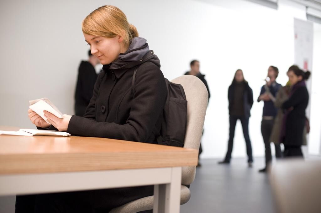 Wer den verlockenden Stapel von Fotografien betrachten möchte, muss sich selbst dem Betrachtet-Werden aussetzen: nur vor einer aufzeichnenden Kamera sitzend darf der Stapel angeschaut werden. So entsteht ein visuelles Archiv von Betrachtenden, das neben den Live-Betrachtenden abgespielt wird und die Konservierung des Momentes und derer, die dazu ""ja"" gesagt haben, bezeugt. Die Installation vermählt sich mit den Betrachtenden in einer Geste des gegenseitigen Gebens und Nehmens. Gleichzeitig spaltet sich die Gruppe der Besucher in die, die die Fotos gesehen haben, und die, die sich nicht ins Archiv begeben und also auch keinen Blick auf die Fotografien werfen: ledig bleiben?