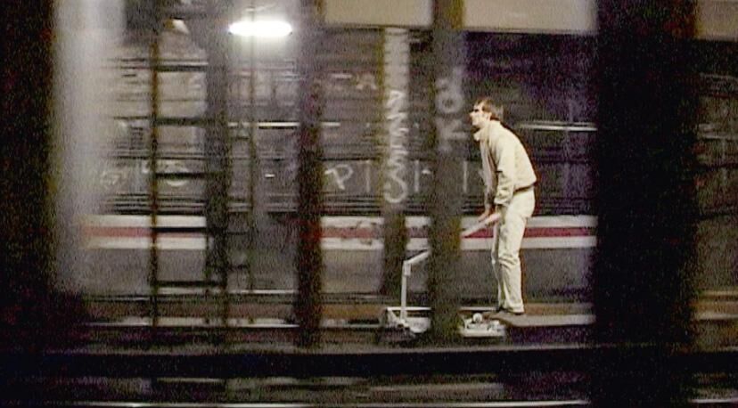Auf einer selbst gebauten Draisine wurden die Gleise des Berliner U- und S-Bahnsystems von Wermke/Leinkauf befahren.