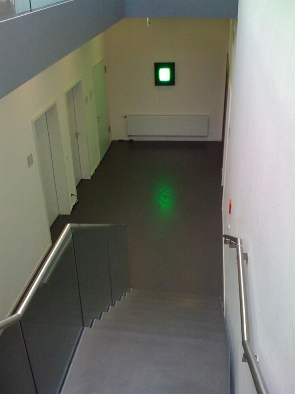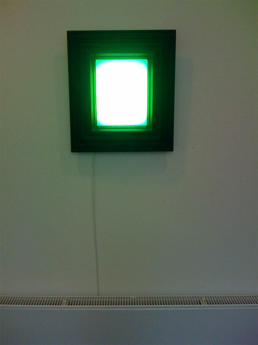 Ein hinter einem Barockrahmen montierter LED-Cluster aus 90 Stück 1W Hochleistungs-LEDs beleuchtet den Raum mit etwa 45.000 Candela. Die Intensität der Helligkeit und das ungewohnt monochromatische Licht sollen beim Betrachter ambivalente Gefühle auslösen: Einerseits ist grün eine positiv besetzte Farbe, so dass man sich aus der Entfernung gerne nähert, kommt man jedoch zu nah, wird die Lichtleistung so hoch, dass es fast schon etwas bedrohliches hat. Hält man sich eine gewisse Zeit vor dem Objekt auf, so passt sich die menschliche Wahrnehmung an die ungewöhnliche Lichtsituation an, ein Buch beispielsweise ist für das Bewusstsein erfahrungsgemäß auf weißem Papier gedruckt. Auch die Feststellung, da ja die anderen Räume weiß gestrichen sind, müsste der aktuelle Raum ebenfalls weiß sein, schlägt sich auf die Wahrnehmung nieder. Nach einem Aufenthalt von ungefähr über einer bis etwa zwei Minuten hat man sich bereits so sehr an das grüne Licht gewöhnt, dass man bei der Rückkehr in normal beleuchtete Umgebung alles mit einem rosafarbenen Stich sieht.