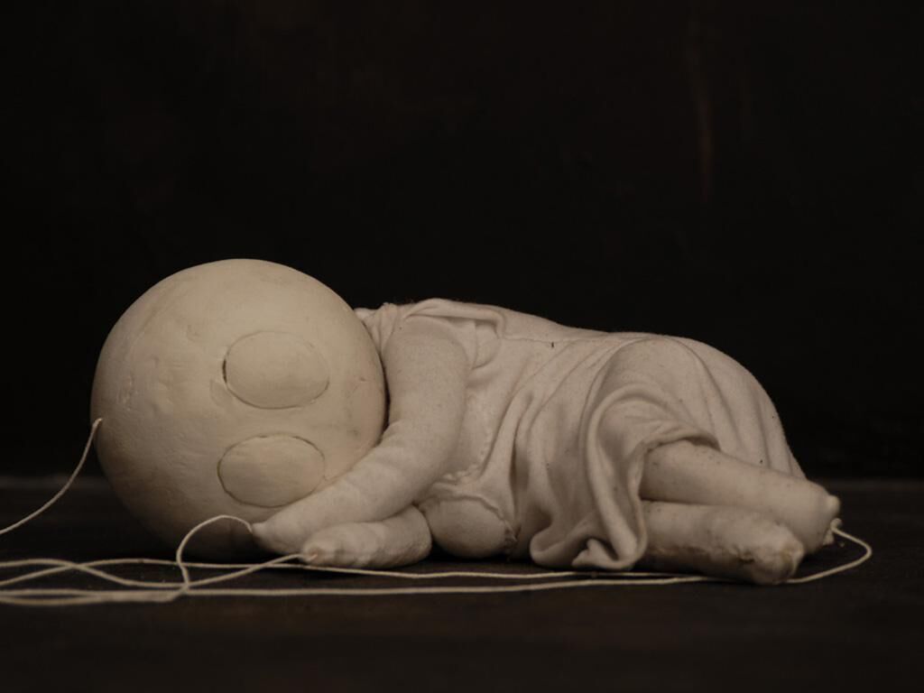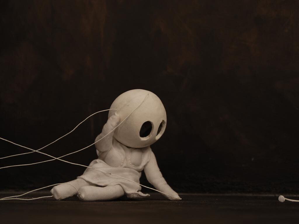 Eine Marionette schläft und träumt, dass sie sich von ihren Schnüren und ihrem Kreuz befreit. Die wirkliche Freiheit benötigt aber Mut und Willen.