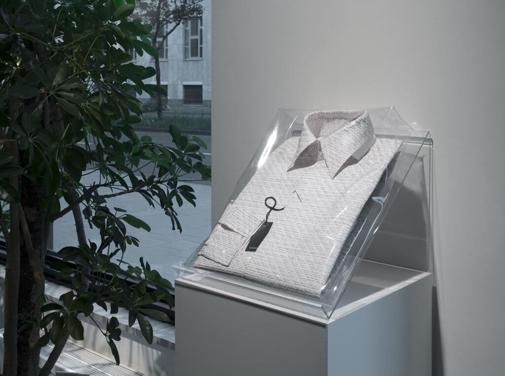 Das Wertesystem eines Unternehmens beschreibt, wofür das Unternehmen steht und ist zugleich ein Verhaltenskodex für die MitarbeiterInnen. Um als „High Performer“, als leistungsfähige/r MitarbeiterIn betrachtet zu werden, ist ein Verkörpern dieser Werte wichtig. Wertesysteme müssen „gelebt werden“. Das Hemd Values besteht ausschließlich aus Büromaterial. Um die Streifen anzufertigen, die dem Stoff als Schuss dienen, sammelte ich Wertesysteme von 80 Unternehmen im Internet. Ich druckte sie auf Papierbögen, die ich mit einem Aktenvernichter in feine Streifen zerschnitt. In langsamer Heimarbeit webte ich daraus einen Stoff, aus dem das Hemd angefertigt wurde. Values kann als Schutzhülle verstanden werden, durch die die Werte nach außen sichtbar getragen werden, während das Innere unbeschrieben bleibt. Da es aus Wertesystemen verschiedenster Unternehmen besteht, bietet es eine große Flexibilität und garantiert die Leistungsfähigkeit in einem sich rasch verändernden Umfeld. Es steht zur Verfügung.