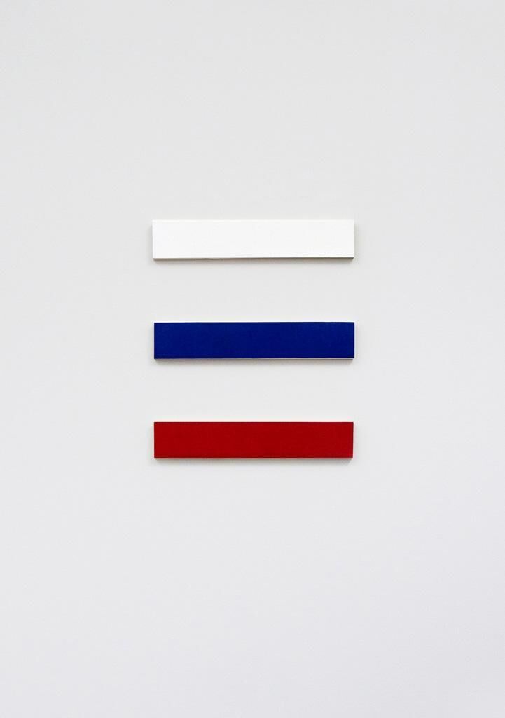 Auf den ersten Blick wirken die drei lackierten Holzleisten wie eine Reminiszenz an die Minimal Art. Der Titel der Arbeit jedoch macht deutlich, dass es sich um die Visualisierung dreier, im weitesten Sinne soziologischer Bezeichnungen für Klassenzugehörigkeiten innerhalb der Arbeitswelt handelt: die englischen Bezeichnungen White Collar für Bürokräfte, Blue Collar für Handwerker sowie der amerikanische Begriff Red Neck für (reaktionäre) Farmarbeiter. Die Form der Leisten ist dabei an den Hemdkrägen orientiert, deren Farbe, beziehungsweise Fehlen, zu einer Kategorisierung des sozialen Standes genutzt wurde.