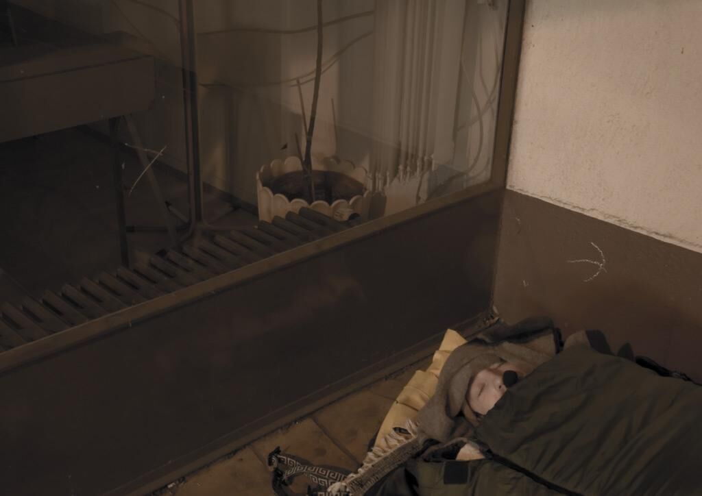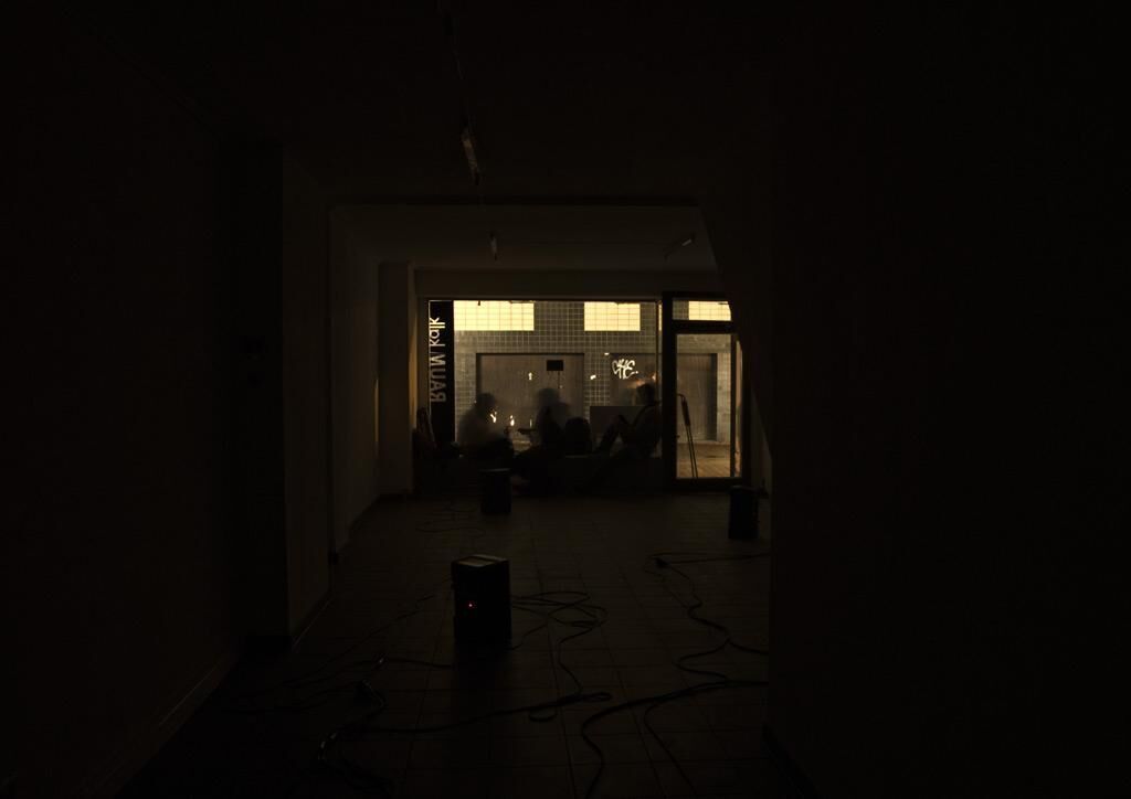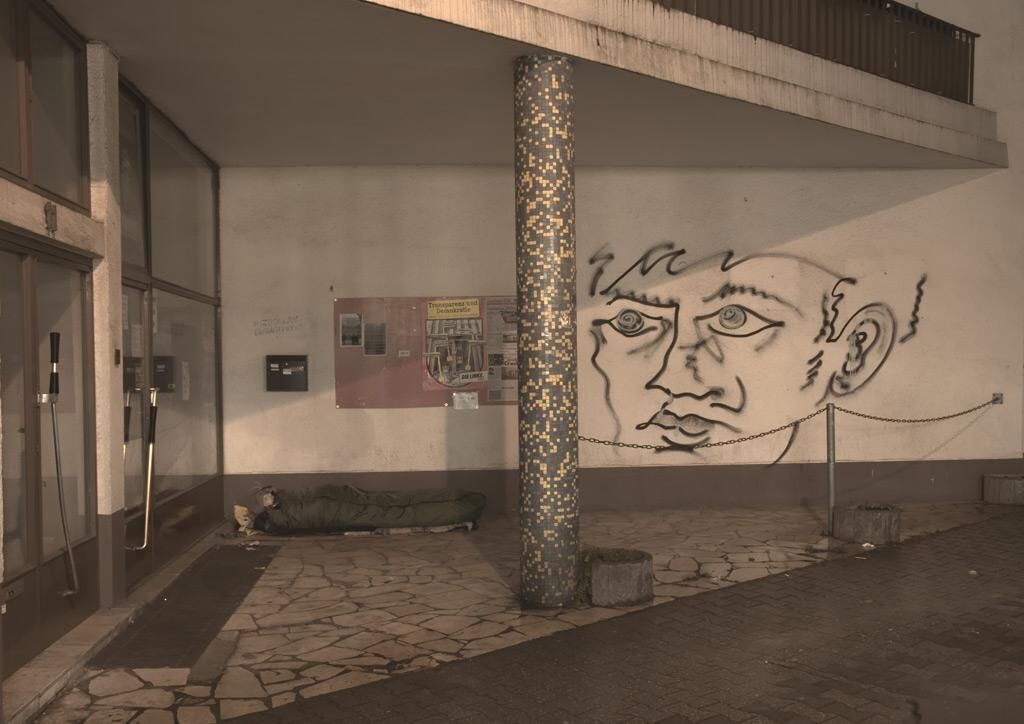 Die Galerie war dunkel. Auf dem Boden standen neun Lautsprecher, zufällig positioniert. Alle Lautsprecher übertrugen ein lautes Schnaufen und Schnarchen gemischt mit Stadtgeräuschen von vorbeifahrenden Autos, Passantenschritten, Musiktönen und Menschengesprächen. Währenddessen befand sich der Performer in einem Schlafsack auf dem Bürgersteig auf der anderen Straßenseite und schlief tief, einem obdachlosen Penner ähnlich. Unmittelbar vor seinem Mund war ein kleines Funkmikrophon angebracht. Eben das Mikrofon versorgte die Galerie mit allen obenbeschriebenen Tönen.