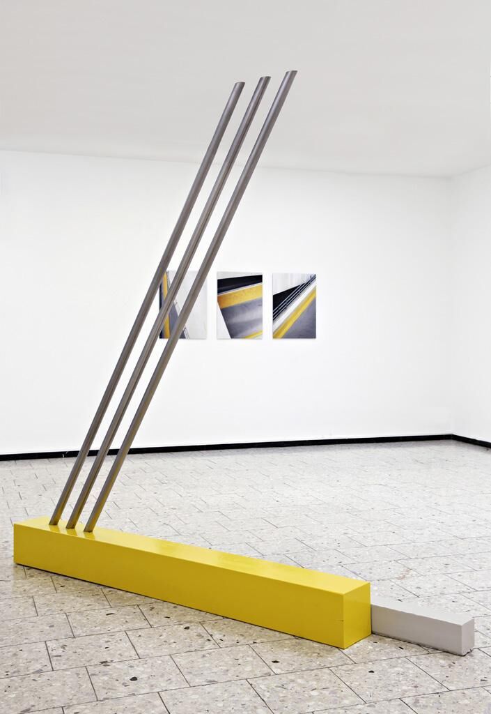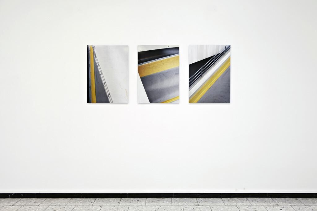 Der Titel „parking structures“ bezieht sich einerseits auf das Motiv der Fotografien, das Parkhaus. Zugleich verdeutlicht er aber auch den streng formalen Aspekt der Umsetzung. Verschiedene architektonische Elemente des Parkhauses werden in den Fotografien als grafische, malerische Mittel verwendet, wie Farbe, Fläche und Linie. Das Objekt nimmt seinerseits wieder Elemente der Abstraktionen auf (Farbe, Form, Linie) und schließt durch die verwendeten Materialien (Stahlrohr, Holz, Beton...) den Kreis zum abgebildeten Motiv: dem Parkhaus.
