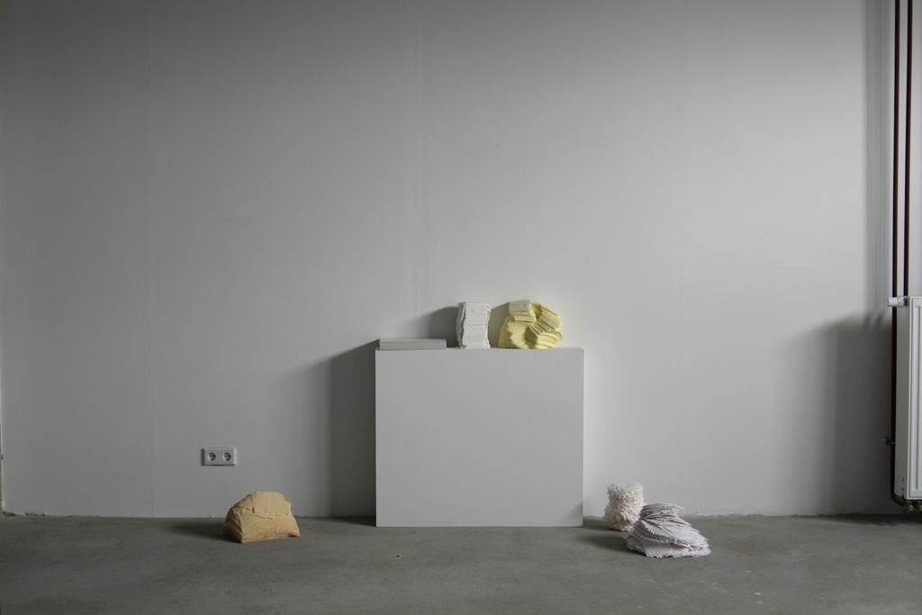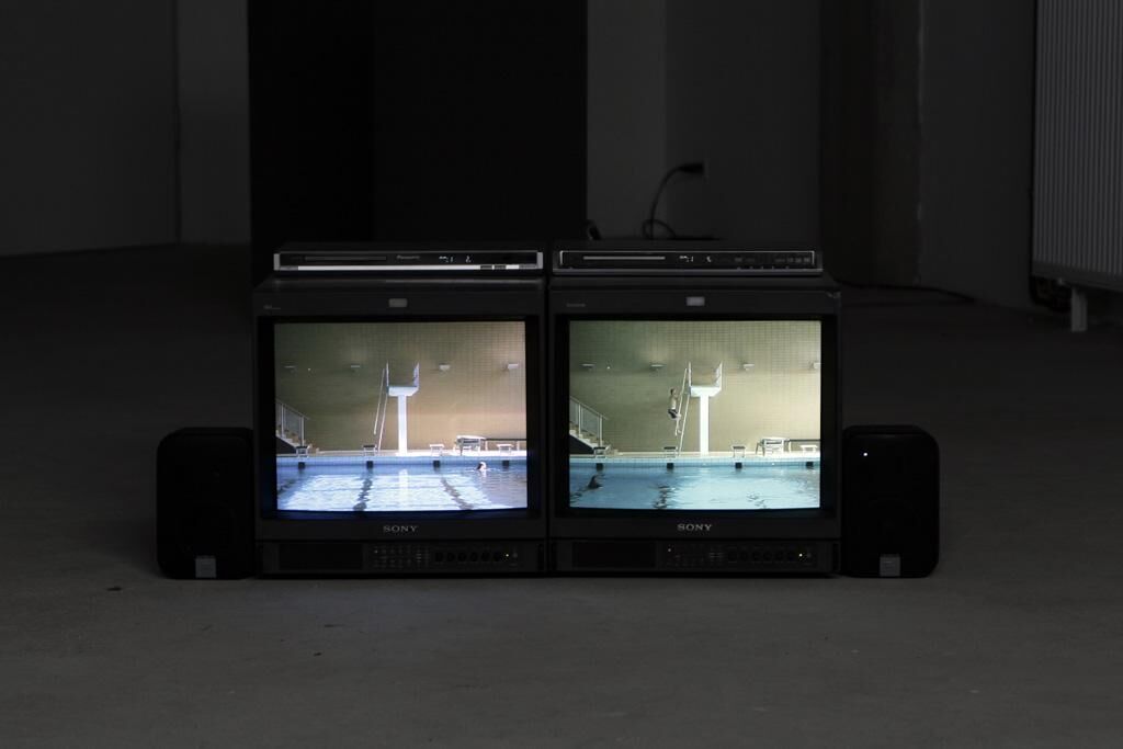 2-Kanal-Video / 00:03:15 / Loop / mute / Projektion 2-Kanal-Video / 00:13:47 und 00:11:31 / Loop / zwei 12″ Kontrollmonitore 00:05:49 / Loop / mute / 8″ Kontrollmonitor Buch / 30 x 21,5 cm 5 Papier-Objekte
