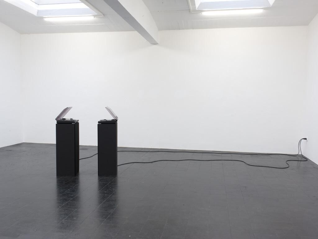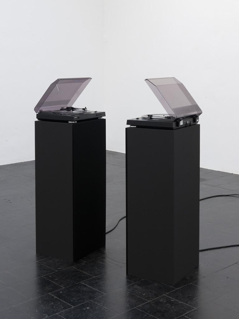 The End Soundinstallation (2012) „The End“, von The Doors ursprünglich aufgenommen und später von Nico gesungen, ist eigentlich das Lied einer Trennung. Als Nico, die später mit Jim Morrison liiert war, es singt, ist dieser schon tot. Da ist das Ende dann wirklich das Ende. In Jens Pechos Soundinstallation spielen zwei Plattenspieler beide Versionen des Liedes in einer Art Kanon kontinuierlich ab. Auf Dubplates aufgenommen, werden sich die Aufnahmen im Laufe der Zeit immer stärker abnutzen, so dass irgendwann nur noch diffuses Rauschen zu hören sein wird. Das wäre dann die konzeptuelle Einlösung dessen, was sich auf Song-Ebene bereits mehrfach in unterschiedlicher Konnotation angekündigt hat. Vanessa Joan Müller