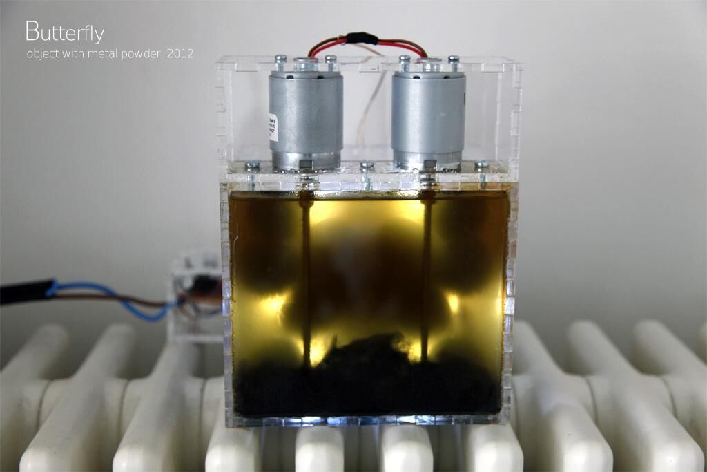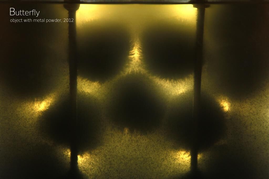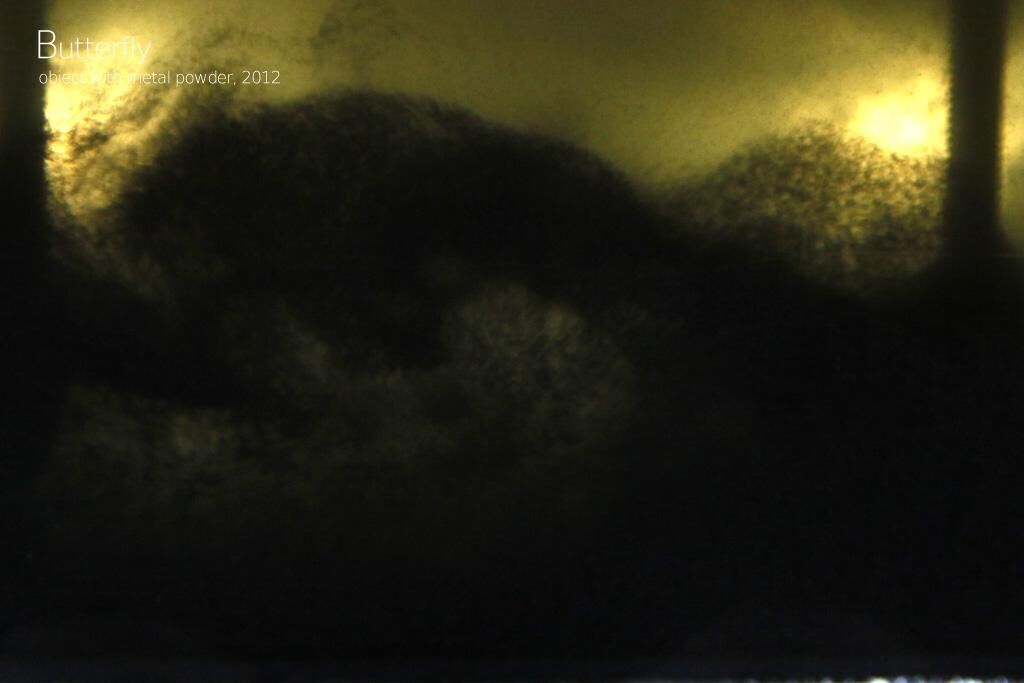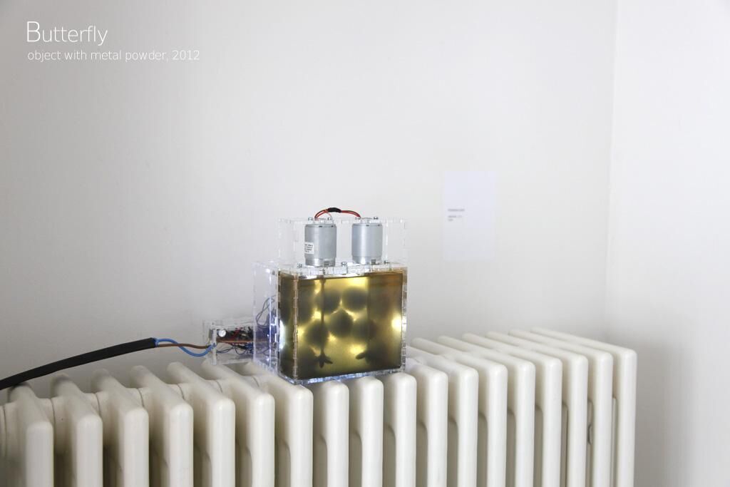 Das Projekt ist eine Installation. In dieser werden Schmetterlinge aus Metallstaub mittels elektrischen Magneten erzeugt. Der Metallstaub ist einerseits nur ein Material in der Kiste, kann aber mit Hilfe des Magnetfeldes ein Lebewesen werden. Der Metallstaub manifestiert sich in Form eines Schmetterlings, der in der Kiste zu schweben scheint. Durch diese unsichtbare Energie wird Lebendes erschaffen.