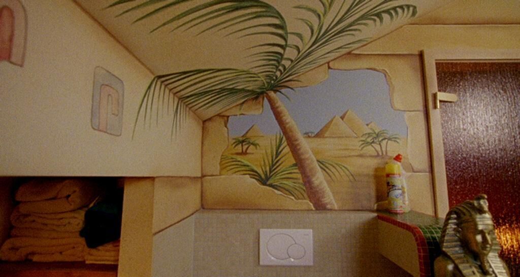 Ein privates Wohnhaus im Bergischen Land am Sonntag. Umgeben von unscheinbaren Einfamilienhäusern trohnt ein Anwesen mit sonnengelber Fassade auf einem Hügel in der Dämmerung. Im Inneren des Hauses eröffnen sich ästhetische Wohnlandschaften vor deren Kulisse das Alltägliche in den individuellen Fantasien und Träumen des Exotischen inszeniert wird. Automatisierte technische Vorgänge spielen sich parallel zum Tagesablauf der Protagonisten ab und verleihen dem Haus ein subtiles Eigenleben. Lobende Erwähnung bei den Internationalen Kurzfilmtagen Oberhausen 2014 Begründung: Erst hört man das Geräusch. Dann sieht man Rollläden in einem Haus im Bergischen Land sich heben. Ein Konzept, das sich durch den Film zieht: Der Ton leitet über zum Bild. Die Filmemacherinnen Miriam Gossing und Lina Sieckmann führen uns mit ruhigen, fotografischen Bildern in einen exotisch-schwülen Mikrokosmos, den man hier nicht vermutet. Dabei beweisen sie ein feines Gespür für die Platzierung der Bewohner im Haus und damit in ihren Bildern, ohne sie der Lächerlichkeit preis zu geben.