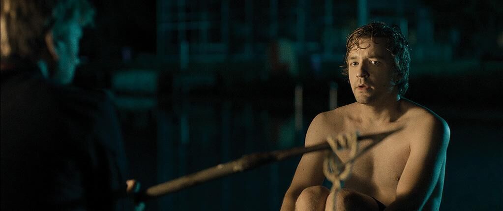 „Junge“ befindet sich in einer absurden Situation. Ohne jegliche Erinnerung erwacht er auf einer kleinen Insel mitten im Schwimmbecken eines Freibades. Sein einziger Ansprechpartner ist ein skurriler Seemann. Und obwohl der Beckenrand nur wenige Meter entfernt ist, scheint dieser für ihn unerreichbar zu sein. Denn im Wasser schwimmt ein Hai.