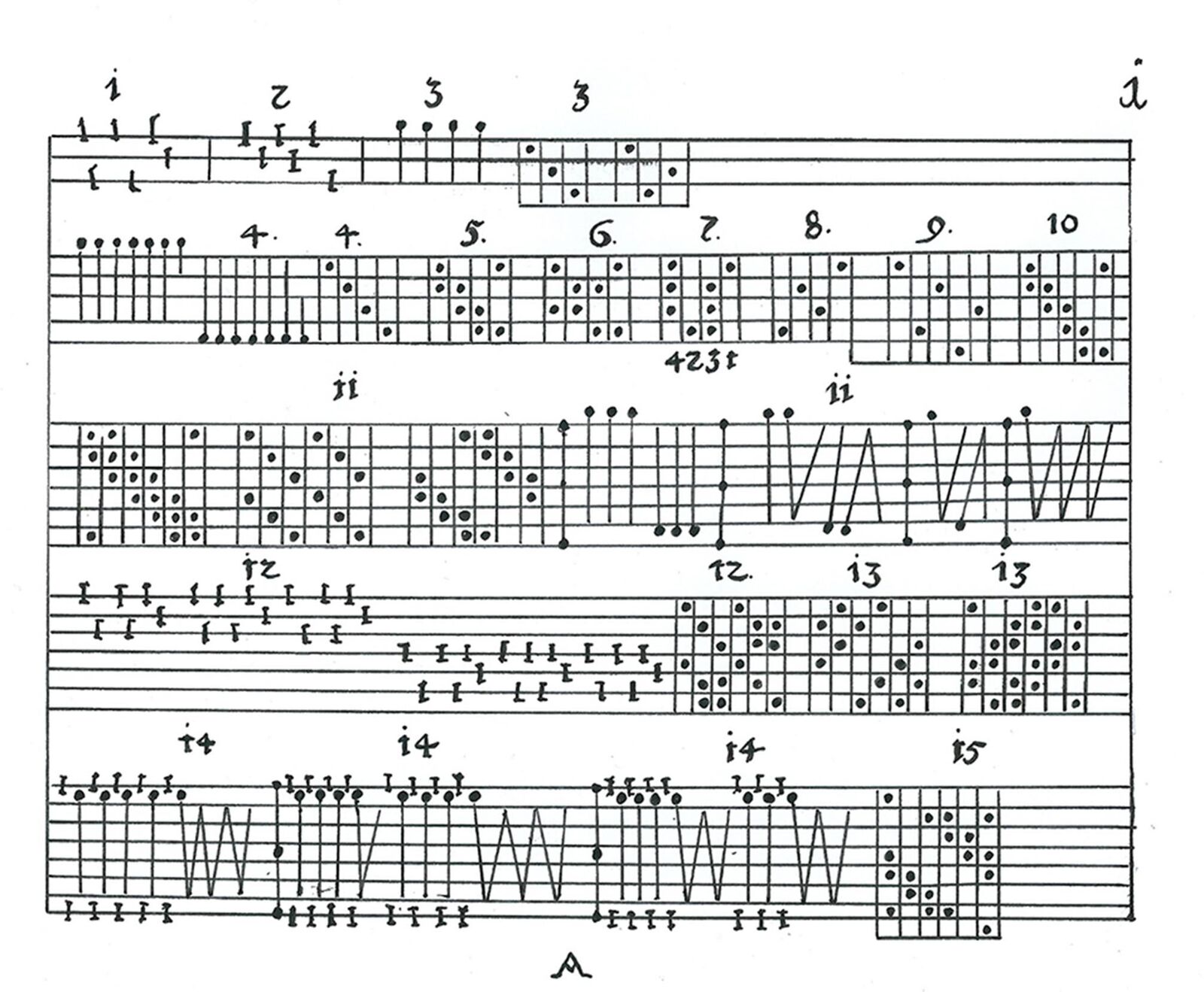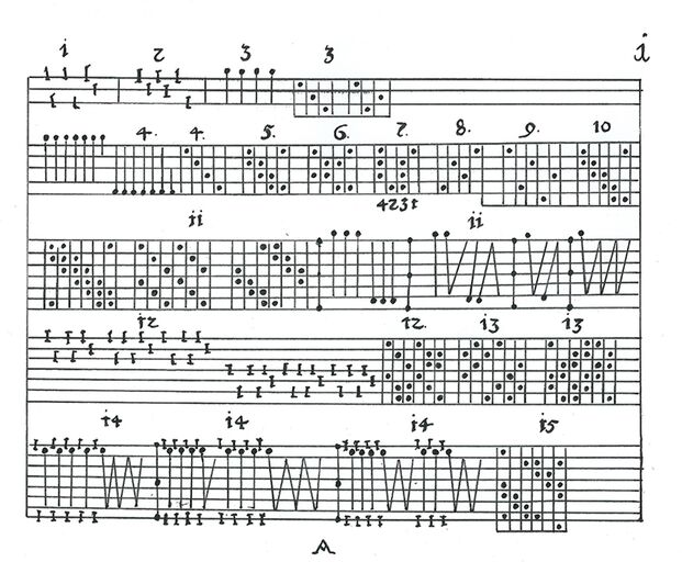 Die Strukturen von Webstuhl und Gewebe sind in der Notation miteinander verbunden. Ähnlich wie die konventionelle Notenschrift dem Musiker den Verlauf einer Melodie vermittelt, lässt sich über die Webpartitur bereits die Gestalt des zukünftigen Werkstücks ablesen. Besonders auffallend ist dabei nicht nur die visuelle Ähnlichkeit der vertikal verlaufenden Kettfäden zu Notenlinien, sondern ebenso das musikalische Vokabular innerhalb der beiden Notationssysteme: Die Weber sprechen von einer Partitur und dem Webstuhl als ihrem Instrument. 1677 gibt Marx Ziegler das Weber Kunst und Bild Buch heraus, das zwischen 1708 und 1736 von Nathanael Lumscher als Neu Eingerichtetes Weber Kunst und Bild Buch erweitert wird und als das erste Musterbuch Muster von Geweben archiviert und reproduzierbar macht. Die Webereinotationen wurden von Sabine Akiko Ahrendt, Georg Conrad, Dirk Rothbrust und Dominik Susteck musikalisch interpretiert. Gefördert vom Alumni - Stipendium „Künstlerische Forschung“ der Hessischen Theaterakademie, vom Deutschen Musikrat und von ON Cologne, Neue Musik Köln.