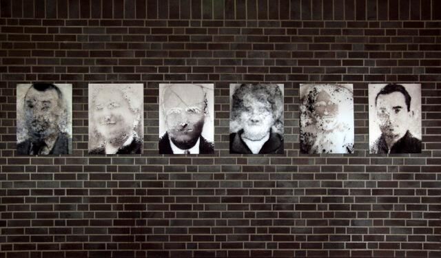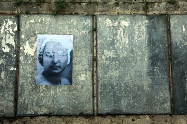 Plakatiert an sechs verschiedenen Orten in Montepulciano, IT. Fotografien von Fotografien an Grabmählern, deren Bildoberfläche sich durch jahrzehntelange, permanente Aussetzung unter ständig wechselnden Witterungsbedingungen transformiert hat.