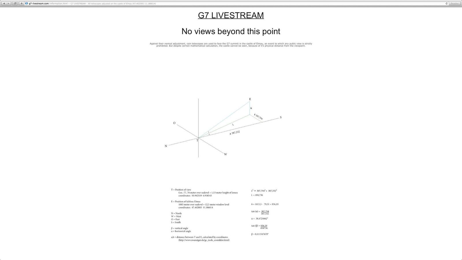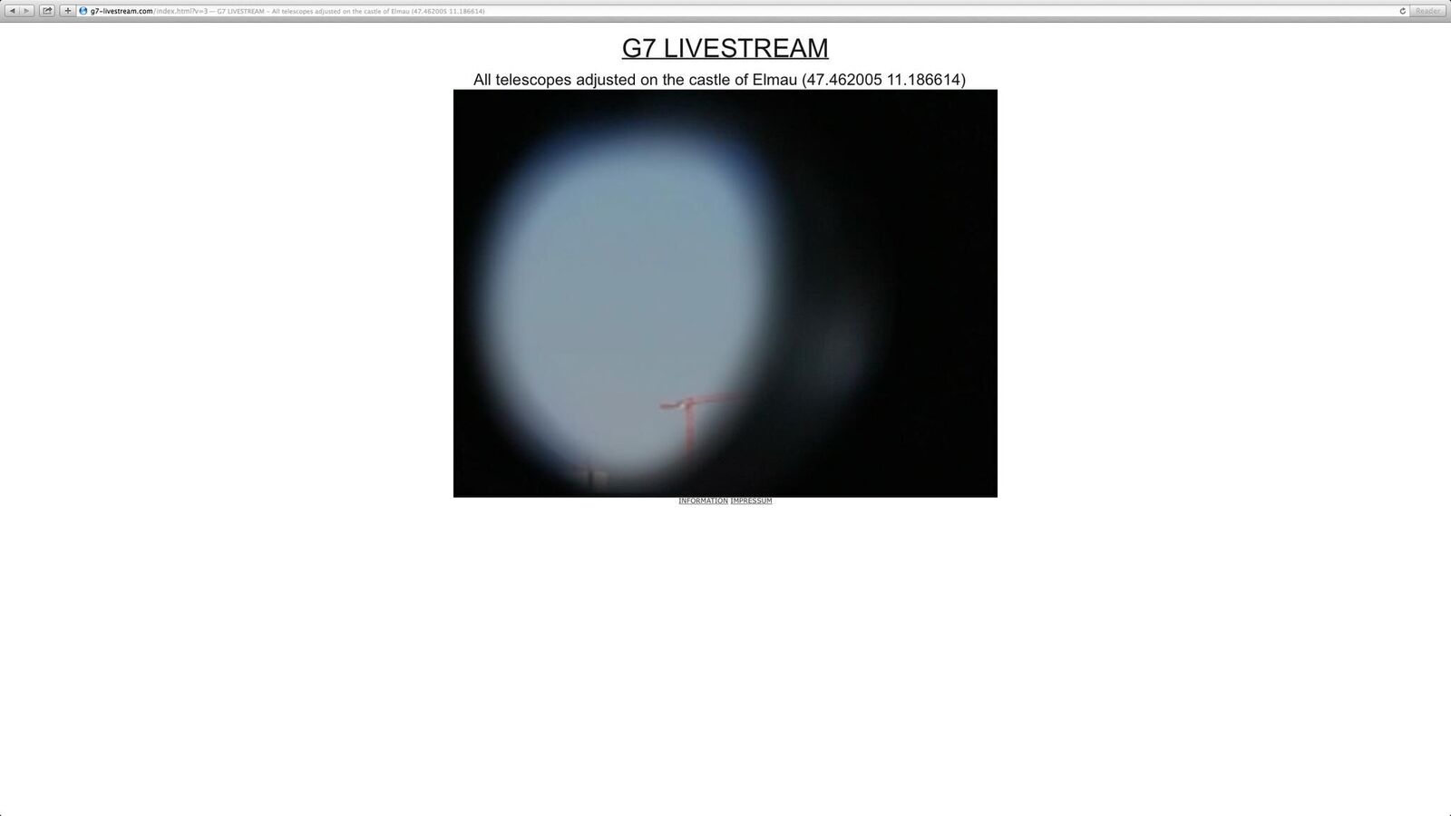 Entgegen ihrer normalen Justierung wurden Münzteleskope mathematisch genau auf den G7-Gipfel in Schloss Elmau gerichtet, eine Veranstaltung, zu der jeder öffentliche Blick strengstens verwehrt wird.