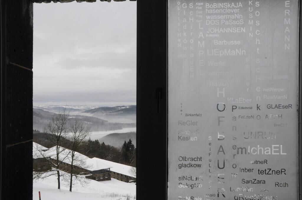 In einem einige Monate andauernden Prozess wurden in mehrere Fenster des Forums Vogelsang die Namen jener unter den Nationalsozialisten verbotenen Autoren gescratcht, die sich auf der Schwarzen Liste ""Schöne Literatur"" befanden.