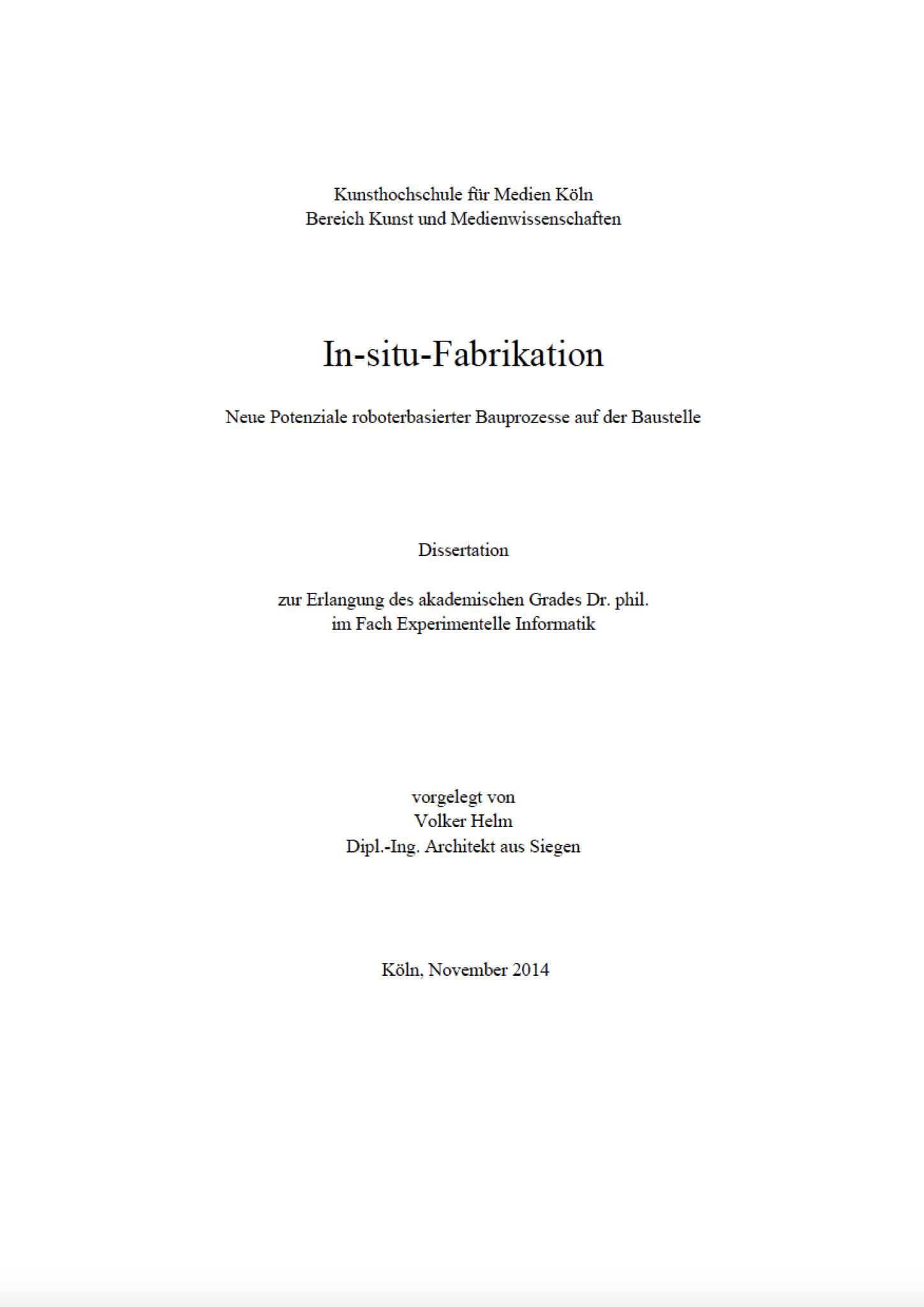 Untertitel: The algorithmic description of robot-based construction processes on site Entstehungsjahr: 2015 Kategorien: Text / Buch / Print, Abgeschlossene Promotion