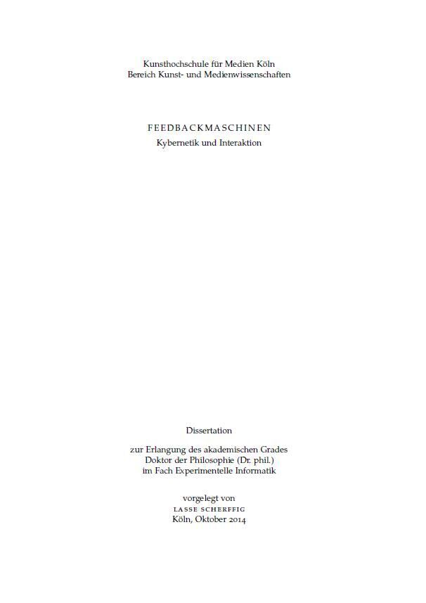 Wie erleben wir Interaktion? Wie kommen die Bewegungen unserer Hand an der Maus und die bewegten symbolischen Darstellungen auf einem Bildschirm zusammen, um als einheitliche Handlung erlebt zu werden: etwas anklicken? Und wie bekommt dieses Etwas seine Gestalt? Ausgehend von dieser Frage entwickelt die Arbeit einen neuen Blick auf das Interagieren, der sich wesentlich auf den Feedbackbegriff und die Kybernetik stützt. Dazu wird einerseits die Geschichte der Kybernetik als Vorgeschichte des interaktiven Rechnens selbst rekonstruiert, andererseits wird kybernetisches Denken für ein Verstehen von Interaktion reaktiviert. Unter Bezugnahme auf die akademische Human-Computer Interaction, sowie Technik- und Wissenschaftsgeschichte, Medienwissenschaften und Semiotik, aber auch auf empirische Psychologie und künstlerische Praxis, entsteht so ein Verständnis von Interaktion, das als Kritik an kognitionswissenschaftlichen Theorien der Interaktion, sowie auch am Vorwurf einer Konditionierung durch Interaktion zu verstehen ist, wie ihn Medienkunst oder Medienwissenschaften formulieren. Zugleich funktioniert dieses Verständnis als Ergänzung zu Theorien „direkter Manipulation“ oder „greifbarer Schnittstellen“, als Einbeziehung post-kognitivistischer Positionen wie „Embodiment“ und „Enactivism“ in den Interaktionsdiskurs, und schließlich als mögliche Antwort auf die Frage, wie körperliche Aktivität und Wahrnehmung beim Interagieren zusammenkommen, um dabei die Gegenstände der Interaktion erst zu erzeugen. Interaktion, so das Fazit der Arbeit, erzeugt Schnittstellen. Die Dissertation ist auf e-Publications@khm veröffentlicht: https://e-publications.khm.de/frontdoor/index/index/docId/127