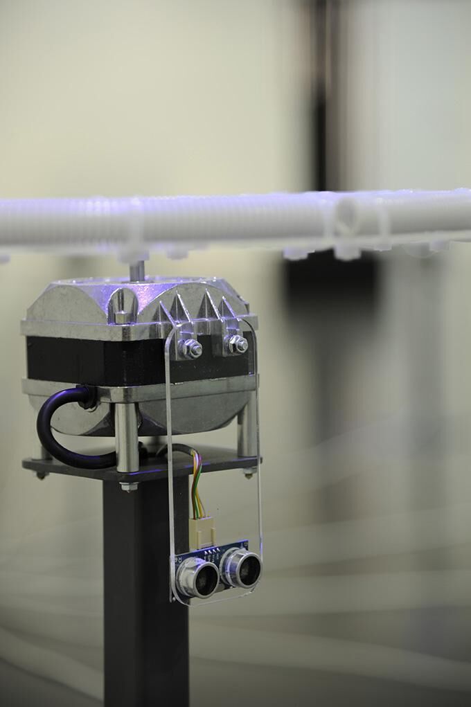 Dem Wind wohnen Klänge inne: ein Schwall von Tonfolgen und Intensitäten, mitunter Harmonien. Wie bei einer Verformung einer Wolke scheinen unendlich viele Klangformen möglich. Angelehnt an Blasinstrumente und den Luftstrom der Orgel, dem Orgelwind, wird durch die Rotation einer Basisscheibe Luft durch jeweils vier darauf montierte Schläuche gepresst und zum Klingen gebracht. Je nach Drehgeschwindigkeit und Länge des Schlauches entstehen unterschiedliche Töne. Sieben Rotationsscheiben reagieren dabei über Sensoren auf die Annäherung und Entfernung der Betrachter und Zuhörer. Ein Stück kann somit einerseits als Zufallsfolge, aber andererseits durch Bewegungsdramaturgie von Akteuren auch als gezielte Raum-Klangkomposition entstehen. SCHLAUCHVENTILATOREN ist somit auch ein Instrument für mehrere Player. Länge und Durchmesser der Schläuche sind u.a. auf die Grundtöne C-Dur (Länge 56cm), D-Dur (Länge 48cm), E-Dur (Länge 45cm) – und so weiter – abgestimmt. Die zu- bzw. abnehmende Geschwindigkeit erzeugt Dreiklänge.