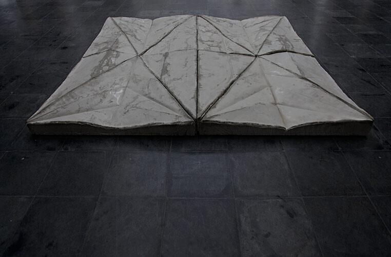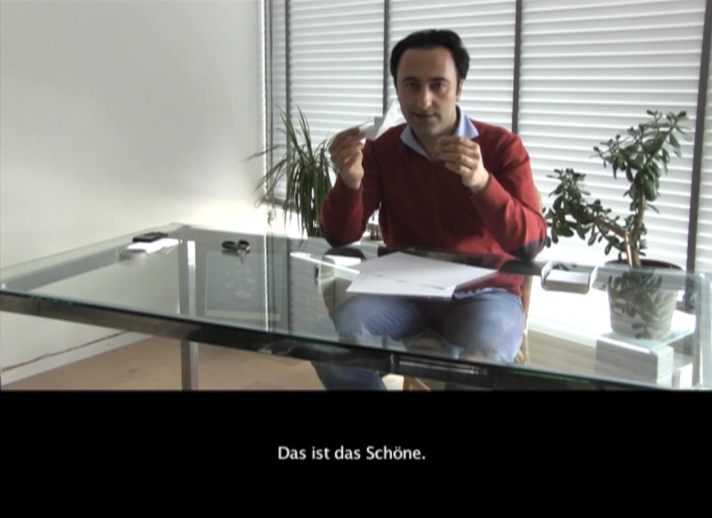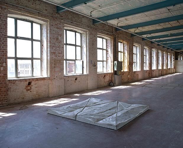 Nadine Decker fordert mit ihrem Videointerview ""How to construct a boat, that is too heavy to float but too light to sink"" (2014) das archimedische Prinzip heraus. Sie bittet einen Schiffskonstrukteur, das Unmögliche zu denken, nämlich ein Schiff zu entwickeln, „das nicht schwimmen kann, weil es zu schwer ist, und nicht sinken, weil es zu leicht ist.“ Damit eng verbunden ist die großformatige, flache Bodenskulptur aus der in Beton gegossenen Struktur eines 1:1 gefalteten Papierboots, das den eingeforderten physikalischen Effekt aus der zeitlichen Achse in sich vereint, indem es aus Papier gefertigt „zu leicht“ ist und schließlich als Betonabguss „zu schwer“. Heike Ander in: what subject can we sensibly discuss, Journal der Kunsthochschule für Medien Köln
