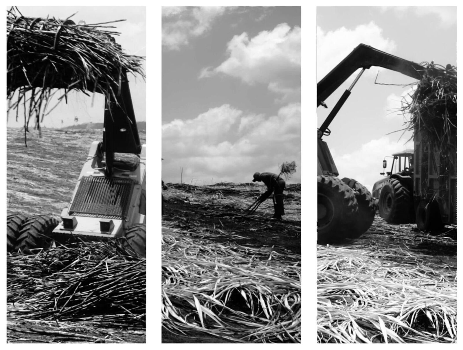 „Mensch, Maschine und Landschaft als Symbole in einem zeitlosen Kreis. Ewige Wiederholung. Es gibt kein Entrinnen. Der Mensch arbeitet der Maschine zu... Maschinen haben keine Träume. Die Mühle mahlt weiter und weiter.“ Seit der Inbesitznahme der Neuen Welt wurden Arbeitskräfte gebraucht, um auf den Zuckerrohrfeldern zu arbeiten. Menschen wurden millionenfach versklavt, verschifft, gekauft, verkauft, gebraucht, verbraucht, beerdigt, ersetzt. Als Handelsware arbeiteten und starben sie jeden Tag für den Profit. Generation für Generation – Jahrhundert für Jahrhundert. Sie fanden keinen Eingang in die Geschichte. Hinterließen keine materiellen Baudenkmäler. Sie blieben für die Nachwelt eine unpersönliche Masse - Ungeträumte Träume. Die Maschine wurde geboren, um den Menschheit zu dienen. Die Utopie vom Leben, ohne ums tägliche Leben zu kämpfen. Der Mensch sollte träumen und seine Träume realisieren können. Doch die Maschine verdrängte seinen. Der Mensch wurde nutzlos - ein Zuarbeiter für die Maschine. Verlierer im Konkurrenzkampf. - Das Triptychon des ewigen Kreislaufs. Der sakrale Kreislauf der Natur ist entstellt. Die Zwänge, die Monokultur hält den Menschen ohne die Möglichkeit auf Besinnung auf Trapp.