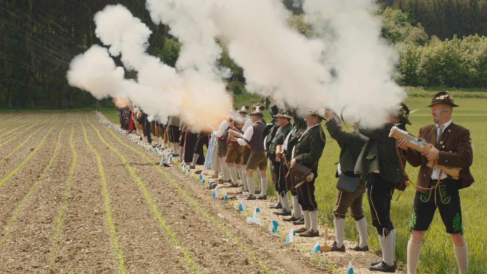 Deutschland – die waffenfreie Zone. Die meisten Menschen hier haben noch nie eine echte Schusswaffe in der Hand gehalten. Sie versuchen sich an Modellen und Planspielen. Der Film zeigt Menschen bei der Traditionspflege, beim Sport, beim Modellbau, im Spielzeugladen, im Kindergarten, beim Filmdreh und bei einem Lehrgang für Spezialeffekte. Und stellt damit die Frage, welche Erfahrungen wir in einem bloßen Spiel machen, die andernorts zur brutalen Realität gehören.