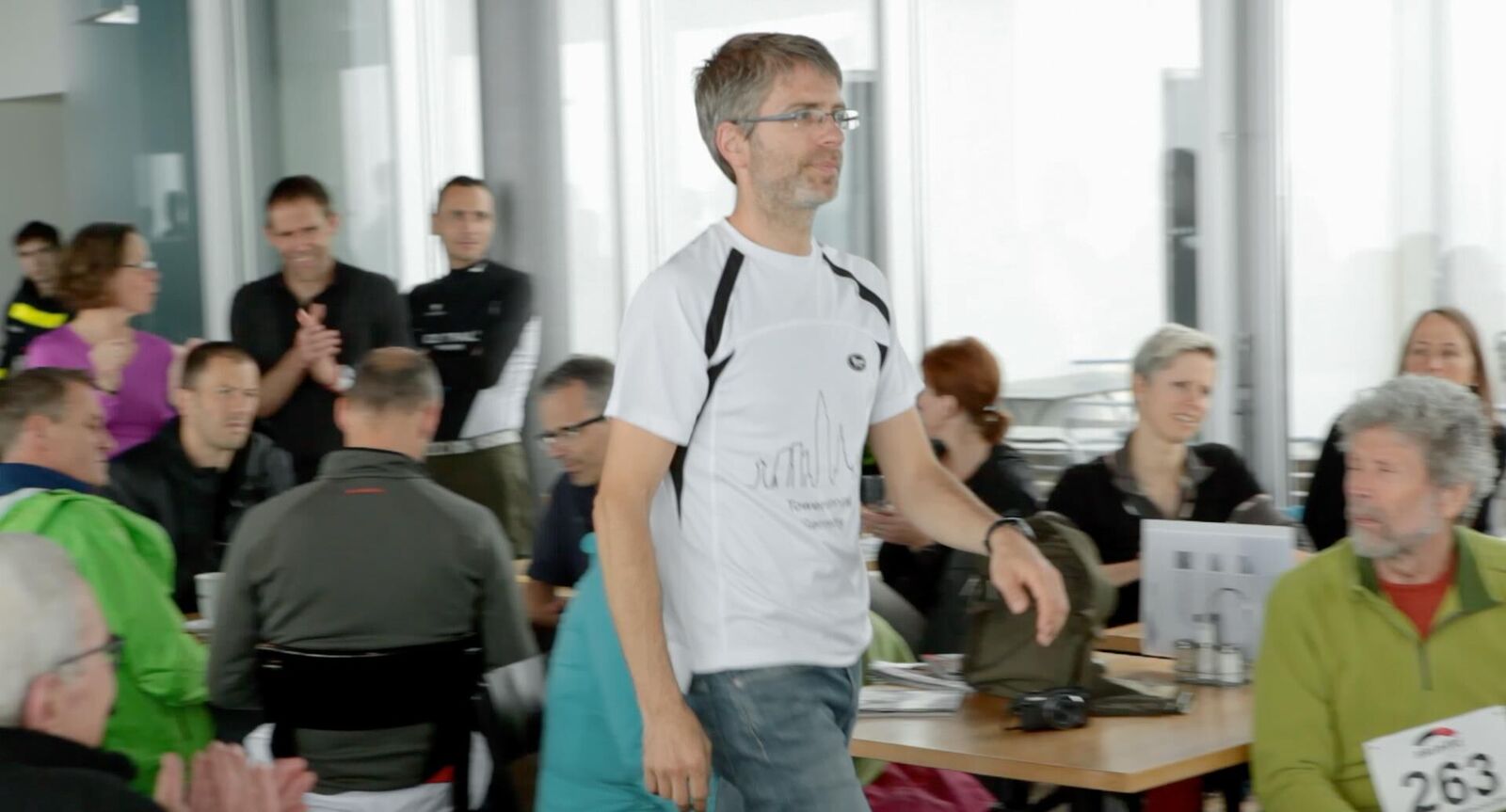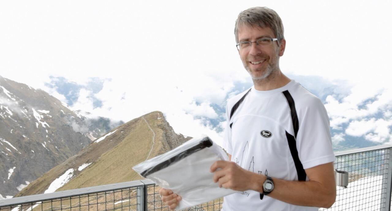 Görge Heimann ist Treppenläufer. Auf seiner 18-Stufen-Treppe im Garten trainiert er für die verschiedensten internationalen Treppenläufe. Sein nächster Lauf führt auf einen Berg in der Schweiz. 11674 Stufen, die längste Treppe der Welt.
