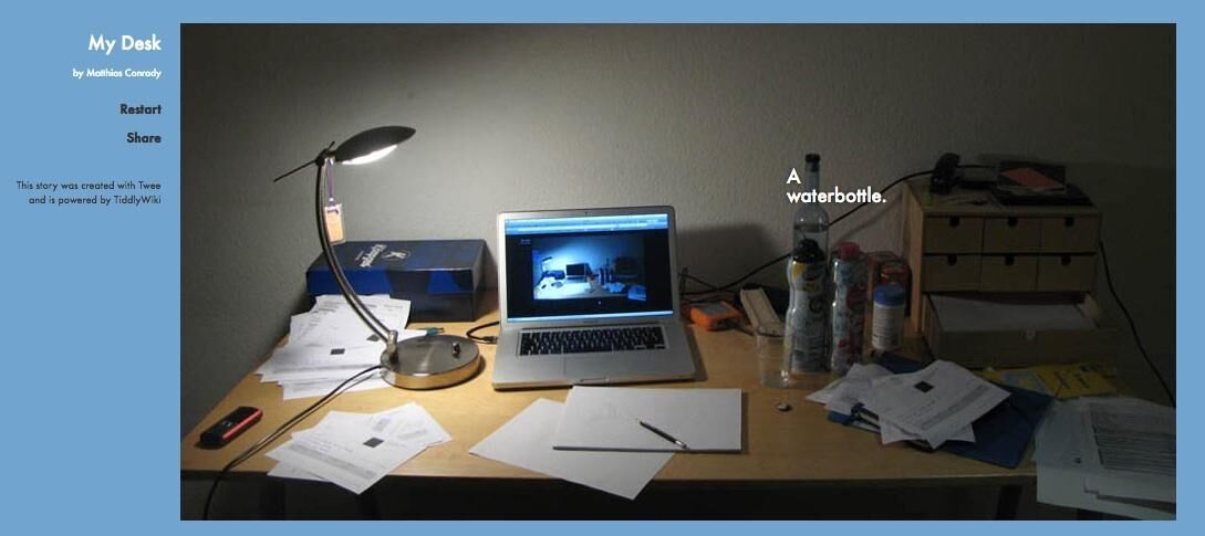 Eine Simulation des unaufgeräumten Schreibtisches des Künstlers in einem spezifischen Moment seines Lebens, offen zur Untersuchung.