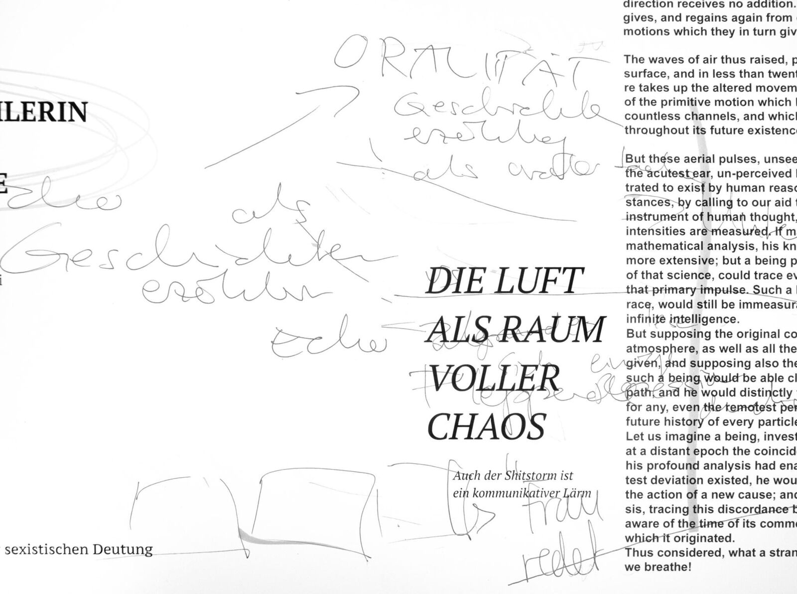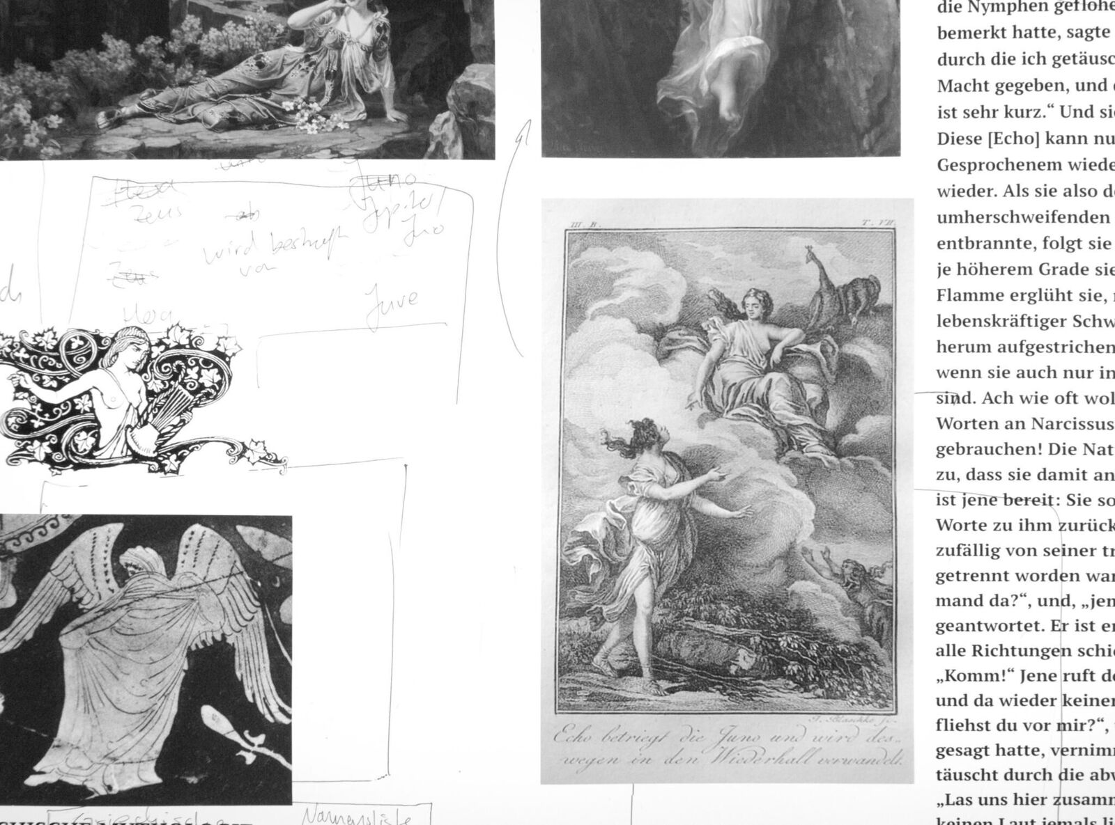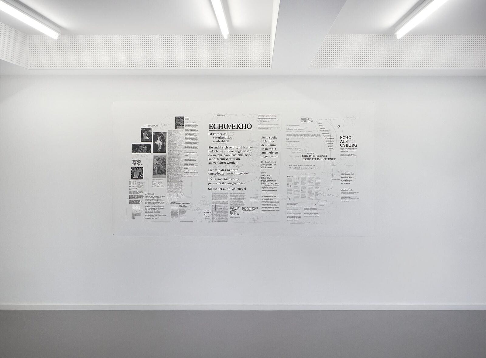 Die unter anderem in der römischen und griechischen Mythologie verwurzelte Figur der Echo weist Parallelen zu theoretischen Überlegungen im Kontext von Digitalität auf. Körperlos und unfähig, ohne a priori an sie gerichtete Worte zu sprechen, existiert Echo nur durch das Gesprochene anderer. Analogien zu digitalen Wiederholungsbewegungen, ""künstlicher Intelligenz"", Cyborgtheorien und dem Amazon Echo werden gezogen. Das Amazon Echo fungiert mit ihrer Stimme auch als Gesprächspartnerin und bildet so die Soundebene der Recherche. Realisiert im Rahmen des Seminars Acht Behauptungen.