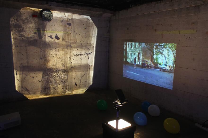 Near 'Bunker 101' in Köln-Ehrenfeld, a performance took place taking into consideration the conditions of the place and its history. During 12 hours, 12 dust samples were collected in 12 different places, obtaining a total of 144 samples that were taken to the Hochbunker. Each place of performance became a place of control. The dust samples were organized in a projection that became darker as the day progressed. A video-documentation of each performance was placed like an accumulation too. Each Performance-Happening had a duration of exactly 5 minutes in order to obtain at the end of the day 1 hour.
