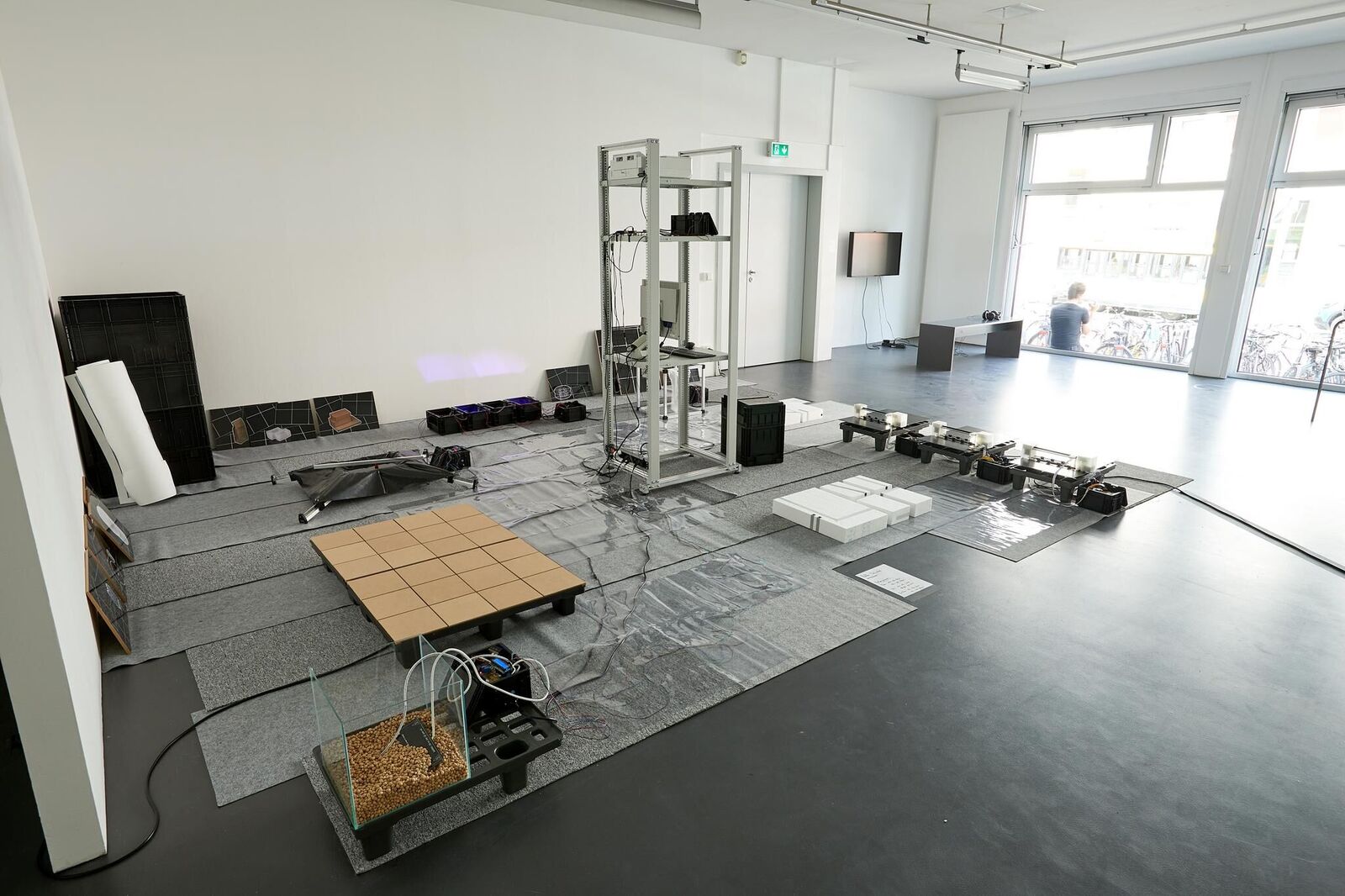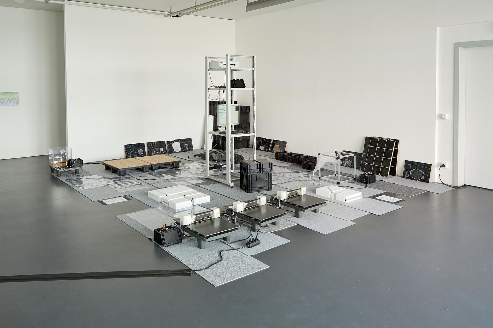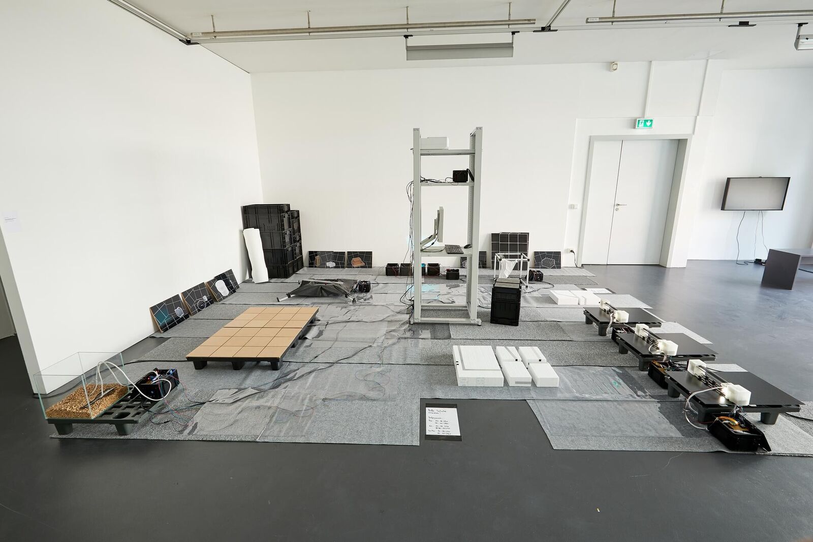 Die Perfomance/Bodeninstallation ‚Iteratives Sachsystem / Nichtiterative sachsystemische Umwelten‘ ist Ergebnis einer Auseinandersetzung mit systemisch-strukturellen Gesellschaftsmodellen. Grundordnung des Kernsystems ist ein hierarchisches Verhältnis, das zur Bildproduktion führen soll. Die Basis ist ein Bild, bei welchem die Pixel immer wieder in Farbgruppen sortiert werden. Dieses Bild wird immerwährend ausgedruckt und gescannt. Nach dem Scannen werden die Pixel, also Werte, an Irritationssachen gesendet, die ihrerseits die Werte materiell ausgeben und durch das erneute Messen irritieren. Dieses, nun irritierte Bild, wird wieder gedruckt und ist so Teil des iterativen Prozesses. Ein*e Performer*in leitet Prozesse ein und wartet das Iterative Sachsystem. Teil der Bodeninstallation sind außerdem die fotografische Bildserie 'Umwelt(Bild)' und die plastische Serie 'Umwelt(Plastik)', welche zum iterativen Sachsystem in einem Umweltverhältnis stehen.