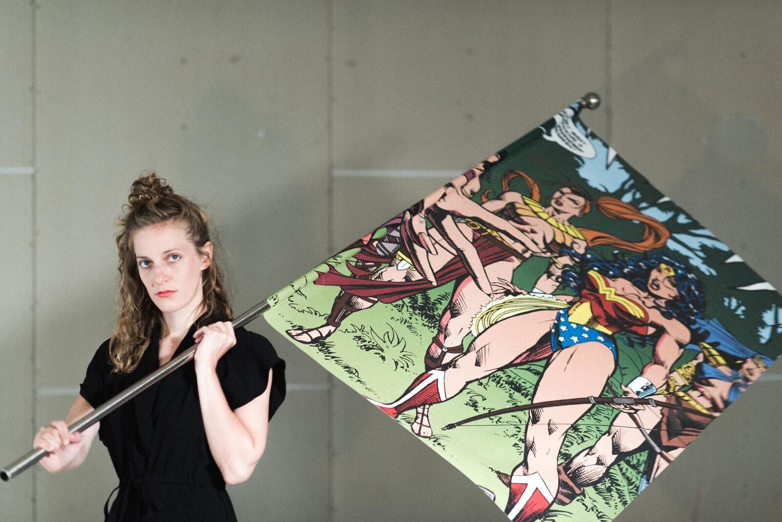 Die Arbeit She Revolver (2018) nimmt in einer performativen Installation von fünf Viewmasterbrillen das Zusammenspiel von Superheldinnen, Spielzeug und Frauenbildern in den Blick. Dabei geht es um Flaggen als Symbolträger und identitätsstiftendes Merkmal der Abgrenzung sowie die Darstellung von Frauen in Comics, Film und Zeichnungen. Durch die Inszenierung von dreidimensionalen Bildern in Kinderspielzeugbrillen werden zweidimensionale Perspektive und dreidimensionale Realitäten ineinander verschoben und hinterfragen ihre eigene Ordnung.