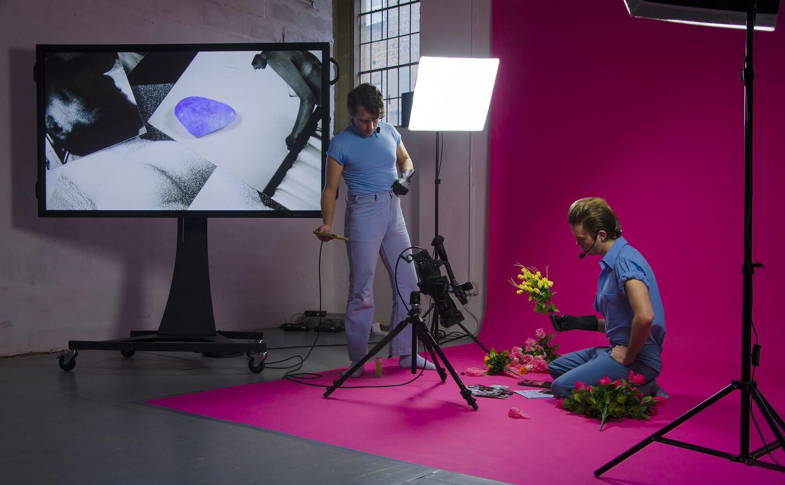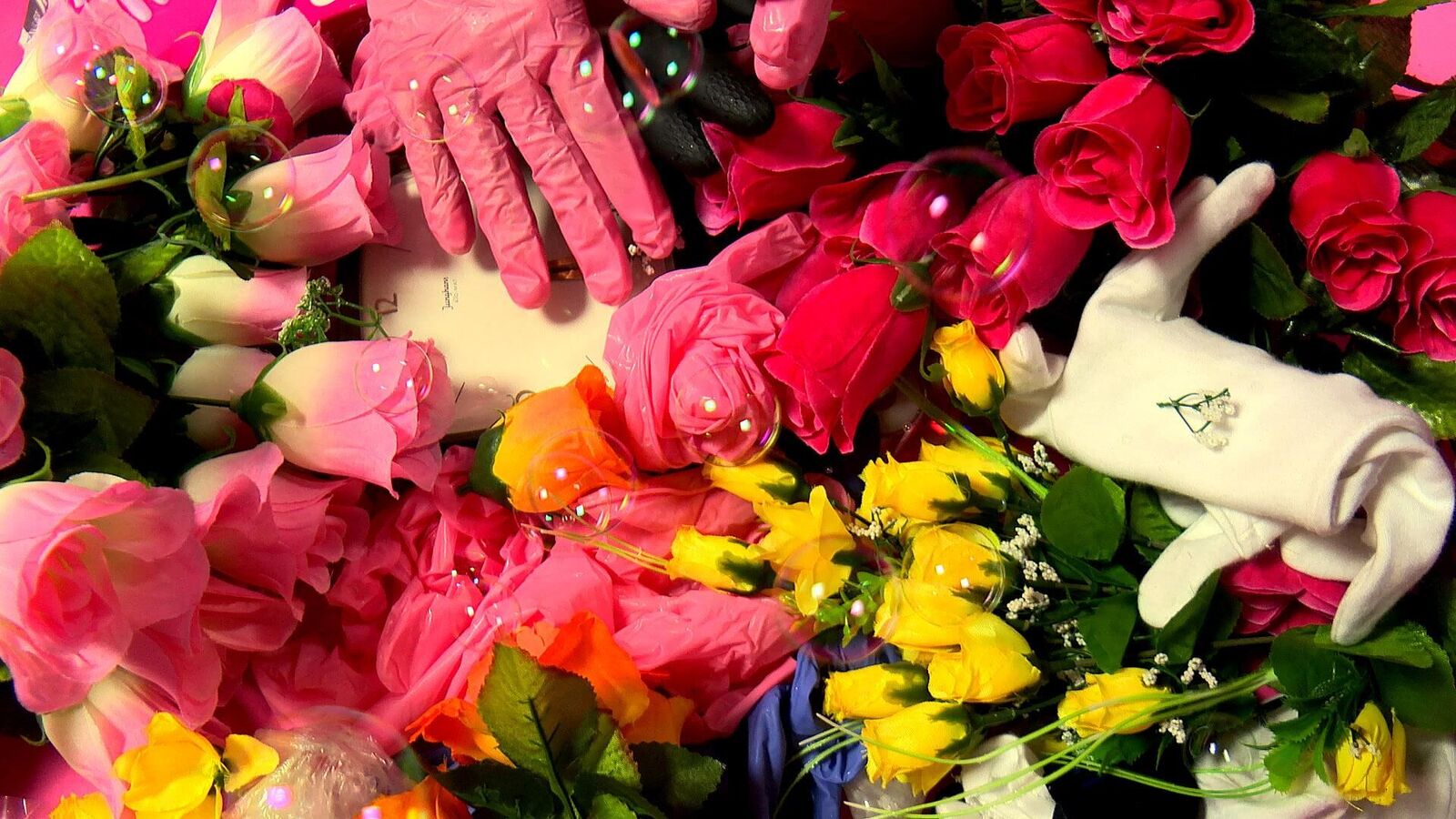 Presented as a live film in ultra close-up, Peter Cant and Krzysztof Honowski make a choreography out of small objects such as healing stones, plastic flowers, and rubber gloves. They improvise the accompanying soundtrack by scrolling through a Google Doc of their past conversations; words which are re-spoken and reprised as tentative, auto-tuned melodies. The live act was first workshopped as Let’s Pretend You’re Close By with the help of ‘I’m With You’ at the Fringe! Queer Film & Arts Fest at the Barbican in November 2015, and then further developed at the Sound Acts Festival in Athens, in May 2016. 'Kustom Kommandos Karaoke' was performed 4 times at A.M. London between 28th and 30th October 2016.