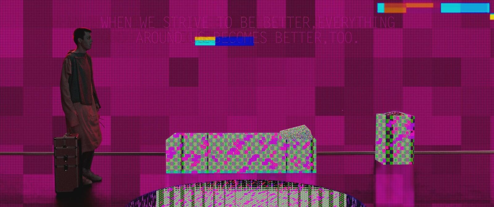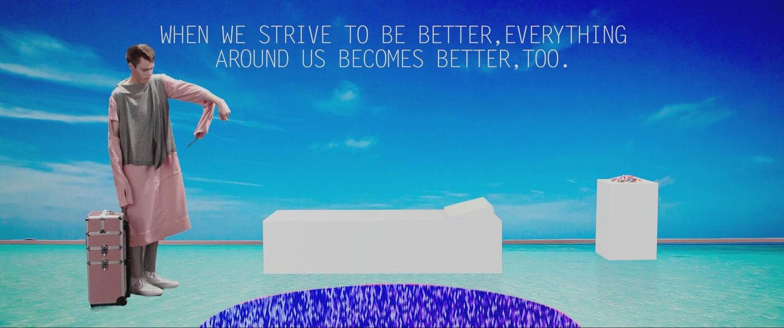 Ein inspirierendes Zitat zerfällt zu digitalem Staub. „Strive“ ist eine kurze Auseinandersetzung mit einer Gesellschaft, die sich der Leistung verschrieben hat, aber keine Fortschritte macht.
