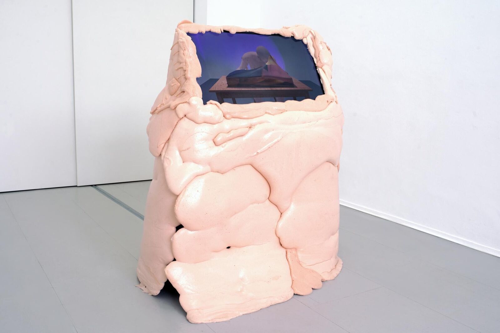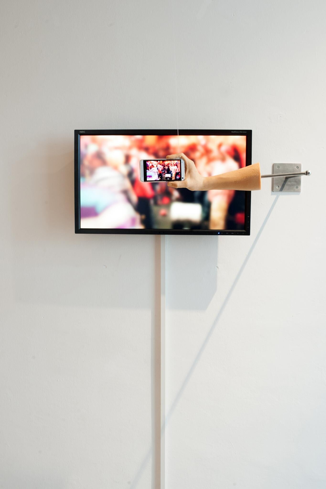 «Ein im fleischfarbenen Schaumstoff versinkender Screen zeigt verschiedene Erfahrungen von Materialien. Found-Footage und 3D-Animationen werden vermischt. Es soll ein haptisches Verständnis ohne die Berührung des jeweiligen Materials entstehen. Durch die Berührung der Protagonisten kann der Rezipient die Beschaffenheit des Materials verstehen. Das hier simulierte Material wird erst in der immersiven Erfahrung durch den Avatar für den Betrachter greifbar und real. Es entsteht eine Idee von Material zwischen den Medien. Der zweite Screen zeigt verschiedene Szenen aus Menschenansammlungen, die oft im Bezug mit Gewalt stehen. Durch den Arm entsteht die Illusion, als würde man diese Ereignisse gerade selbst filmen. Der Fokus liegt auf dem Smartphone, das gefilmte ist unscharf im Hintergrund. Zwischen Wahrnehmenden und dem Ereignis steht ein Gerät, das Empfindungen und Teilhabe reduziert. Die Arbeiten positionieren sich zwischen überfüllter, digitaler Reizüberflutung und medialer Abstumpfung.» (Hermann Nöring, Katalog des European Media Arts Festival 2017)