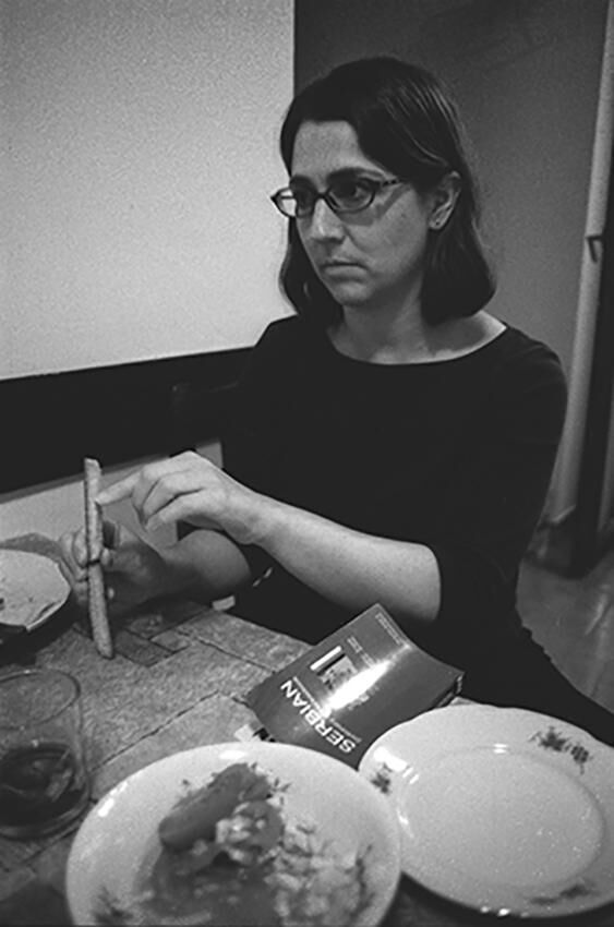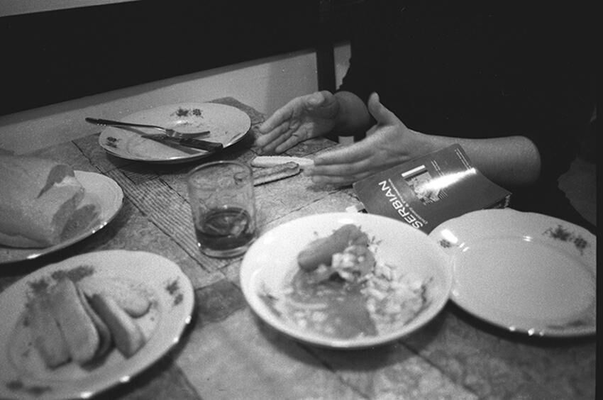 3 Fotografien, gerahmt 60 × 40 / 40 × 60 cm, Fine Art Prints 2019. In einer kleinen Stadt in Serbien erzählt eine New Yorker Kunsthistorikerin ohne viele Worte einer Frau und ihrer Enkelin von den Anschlägen am 11. September 2001. Die beiden haben noch nie davon gehört und amüsieren sich über ihre Bemühungen.