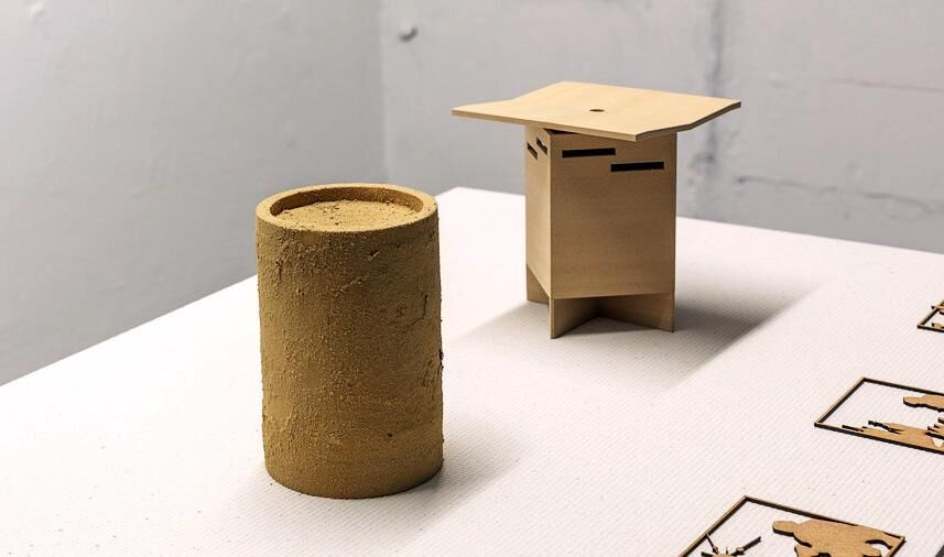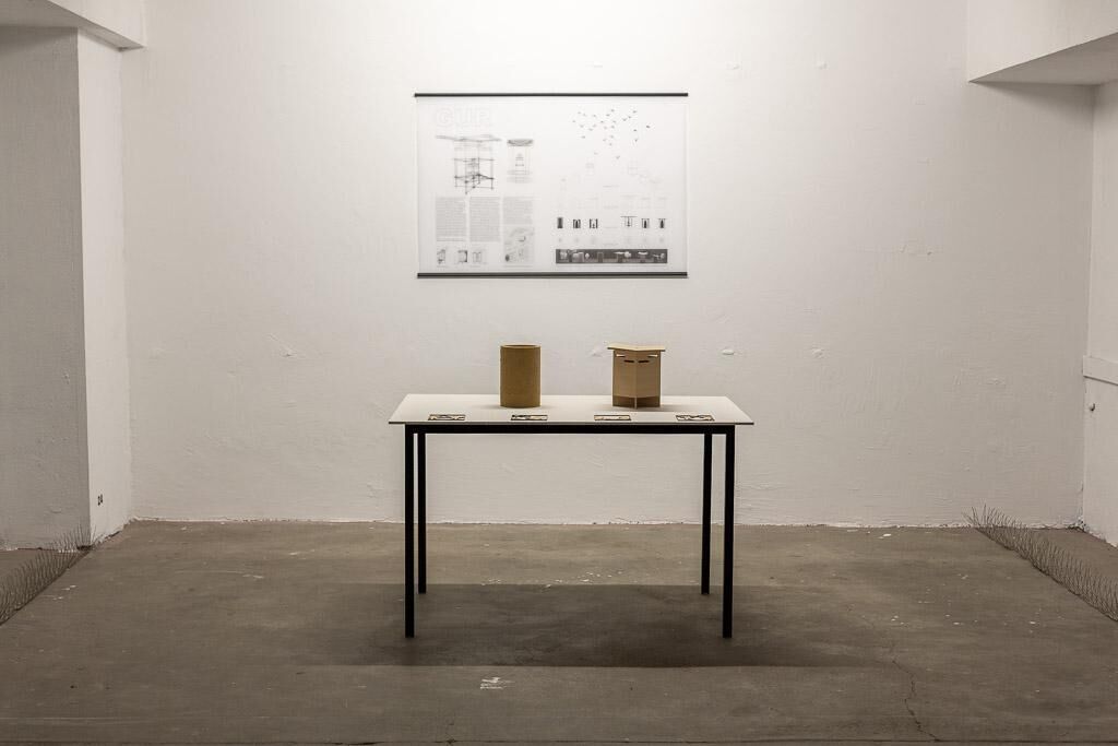 Die Trennung von Kultur und Natur, zeigt sich in der geordneten, gereinigten Stadt durch ein gewalttätiges System. Mittels Gift, Stacheln, Netze, akustischer Signale, Tierattrappen, Elektroschocker wird der Lebensraum von nicht-menschlichen Tieren, wie der Stadttaube militärisch abgegrenzt. Die Taube wird, trotz symbolischer wie emblematischer Konnotation zur urbanen Pest degradiert. Ihr Nutzen für Landwirtschaft, Kommunikation und Nahrung geriet in unser heutigen hoch industrialisierten Welt durch fehlende ökonomische Produktivität in Vergessenheit. Als Antithese einer idealen Metropolis, Störung der modernen Raummatrix, als unruly creature beschrieben, die aus dem Urbanen entfernt werden muss. Doch die von der Felsentaube abstammende, verwilderte Stadttaube gehört zu den ersten domestizieten Tieren und ist ein anpassungsfähiger Kulturfolger. Die Taube als Stadtbewohner*in, als „companion species“ im Sinne Haraways zu betrachten, ermöglicht es die Stadt als Raum für speziesübergreifende Beziehungen zu verstehen, in der Subjektivierung zur Solidarisierung führen kann. – AA Inspiriert durch den Diskurs der Human-Animal Studies und des Animal- Aided Design entstanden mittels architektonisch-künstlerischer Praktiken, skulpturale, gar monumentale Entwurfsmodelle von Taubenhäuser der Wertschätzung und Solidarität. Modelle 1:50, Bandke – Lehm, Arndt – Birke, 3D – Druck, Sound: Konversation der Tauben, Geschichte in vier Akten: Wandfriese, Holz