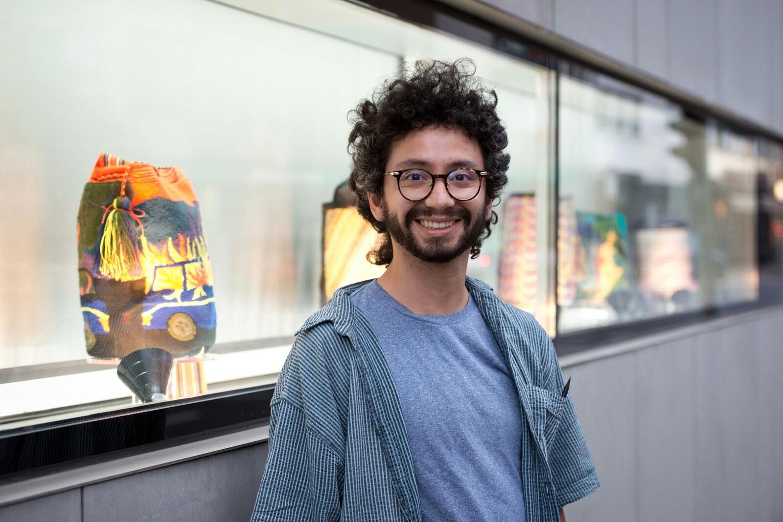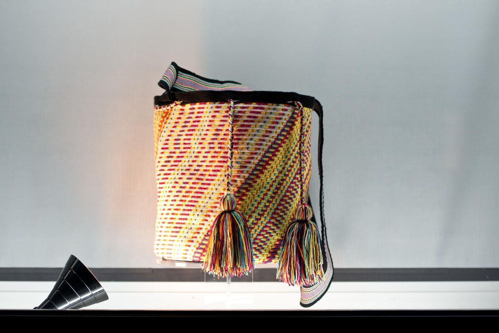 Camilo Sandoval plädiert in seinem künstlerischen Ansatz für eine animistische Perspektive, die die Koexistenz und Symbiose von Mensch und Maschine anerkennt. Seine Abschlussarbeit umfasst verschiedene Werke, die in individuellen wie kollektiven Geschichten auf die aktuelle gesellschaftliche und politische Situation Kolumbiens Bezug nehmen: ein Arcade-Spiel als Karikatur des politischen und sozialen Panoramas, Ponchos in vermeintlich idyllisch-floraler Camouflage-Optik, Hemden mit tropikalischer Barockornamentik generiert aus historischen Daten oder handgearbeitete „Mochila“-Umhängebeutel in leuchtenden Farben mit narrativen und abstrahierten Webmustern, die auf Schilderungen von Opfern des bewaffneten Konflikt zurückgehen. Sandovals LED-Panels „Banderas Alternativas para Colombia“ fügen den zahlreichen Entstehungsmythen über die kolumbianische Nationalflagge – Gelb für die Bodenschätze, Blau wie die beiden Ozeane und Rot für das vergossene Blut im Kampf um die Unabhängigkeit – weitere aktuelle Lesarten und damit potentielle Entwicklungen des Landes hinzu.