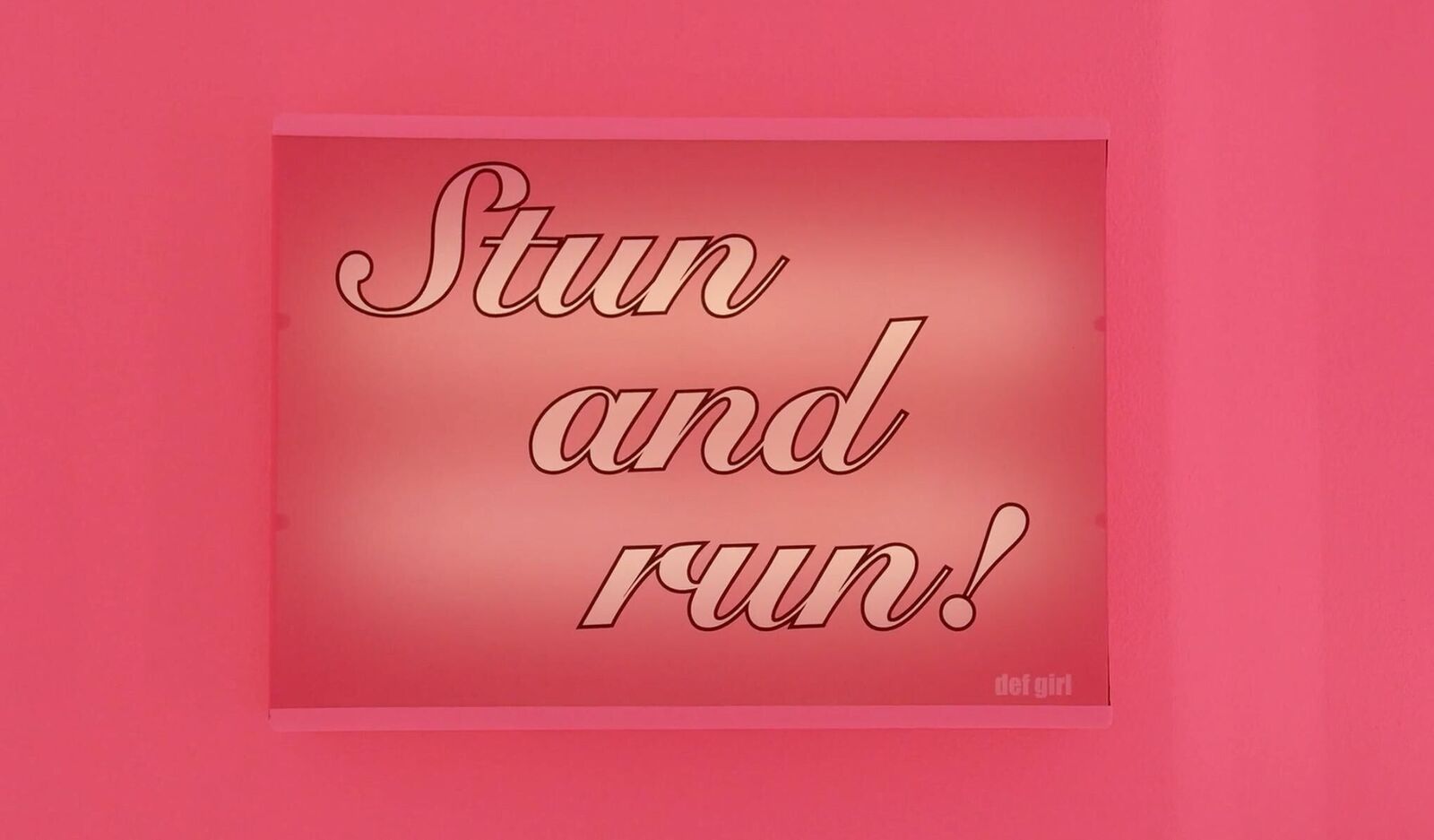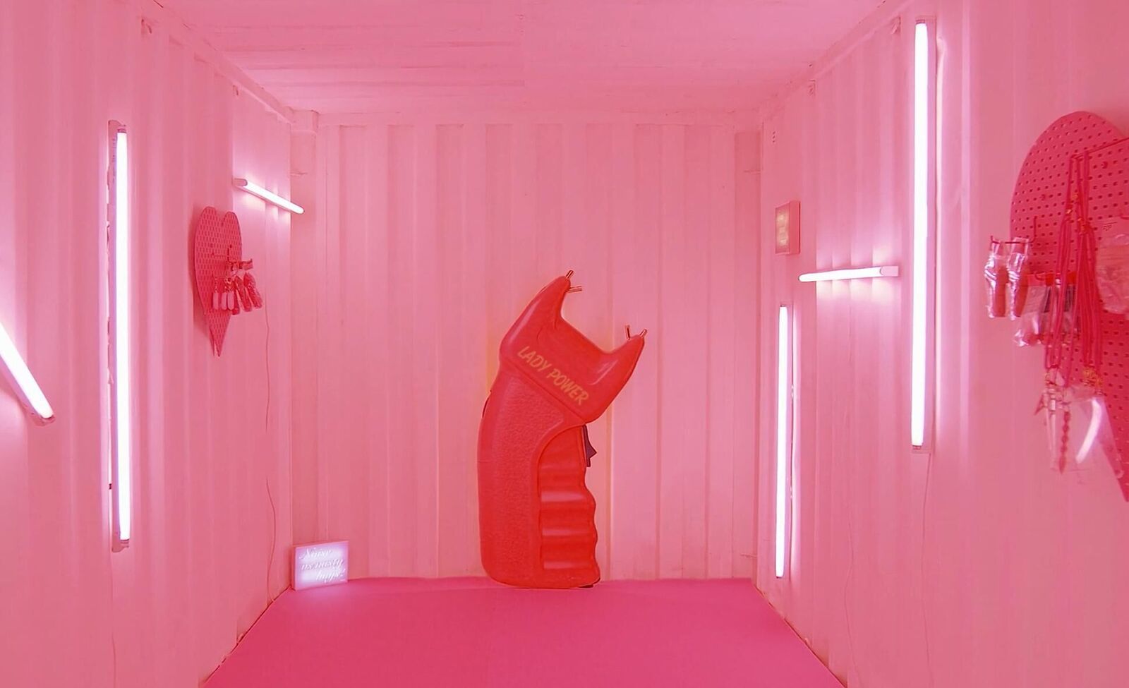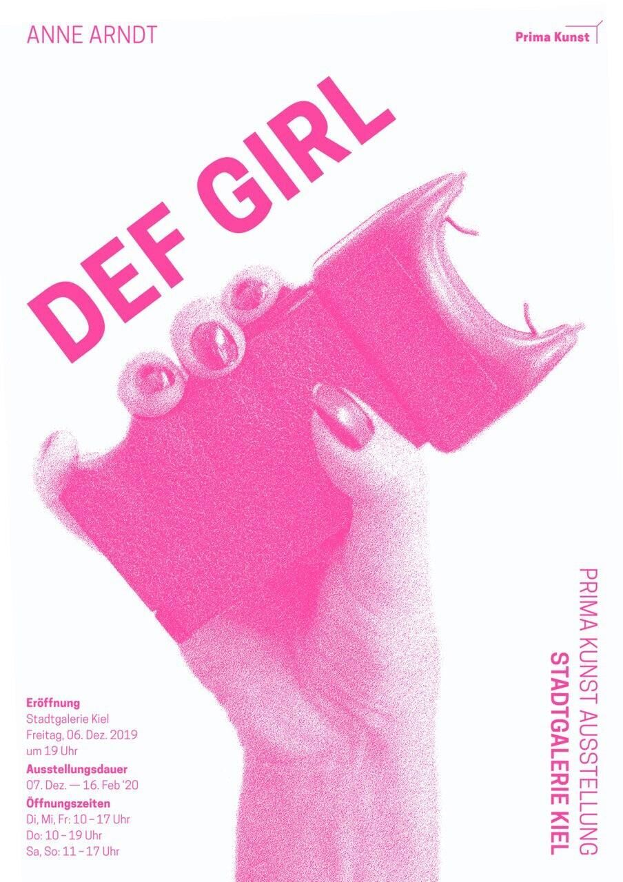 Für die Ausstellung „Def Girl“ transformiert die Künstlerin Anne Arndt den Container des Prima Kunst Vereins in einen mobilen, pinkfarbenen Pop-Up-Shop. Doch statt Do-it-yourself-Artikeln und Accessoires sind Mittel der Selbstverteidigung und Bewaffnung von Frauen im zeitgemäßen Glitzerdesign im Sortiment, vom Pfefferspray bis zum Elektroschocker. Die Künstlerin verlagert ihre Aufmerksamkeit von den im Zuge der #metoo-Bewegung verhandelten Wegen der weiblichen Selbstermächtigung und des feministischen Aufbegehrens in die pervertierten Sphären eines neuen Absatzmarktes für weibliche Selbstbewaffnung, der werbewirksam im Teleshopping angekommen und mitunter von der Waffenlobby unterstützt wird. Anne Arndt verschränkt hier Strategien der Aneignung mit Räumen und ihren Codierungen: den Container als globalisierten Transferraum, privatisierte Waren- und Datenräume, die Schutz vor angstbesetzten Räumen suggerieren, den Pop-Up-Store als glänzenden Sehnsuchtsort – und öffnet mit der Intervention den Ausstellungsraum durch Interaktion und Verhandlung.