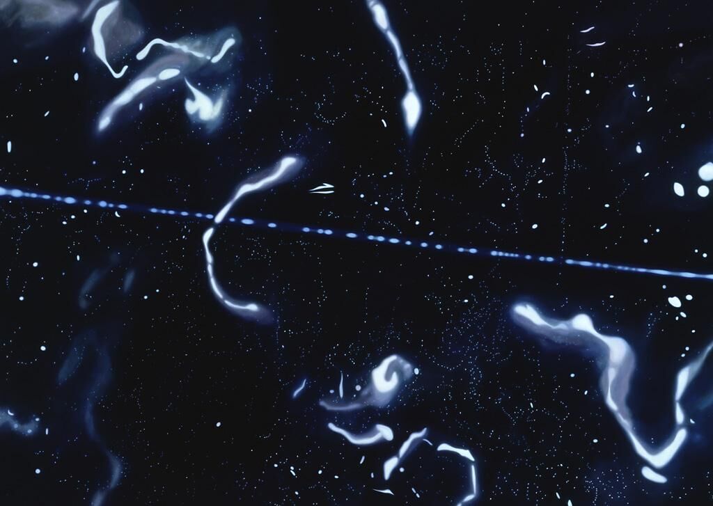 Das Bild ""Niels Bohr"" lehnt sich an Experimente zur radioaktiven Strahlung im Anfang des 20. Jahrhunderts an. Das Gemälde trägt als Titel den Namen einer Person, welche sich im Bereich der Atomforschung hervorgetan hat. Es weist einen hohen Abstraktionsgrad auf, ist es auch dem 'Realitätsbereich' entnommen. Der Einblick in die Mikrophysik wird durch Malerei zum imaginativen Bild - hier verbindet sich die Vorstellung der nur durch wissenschafliche Vehikel und im Alltag nicht sichtbaren Strahlung mit der Entrealisierung durch das Medium der Malerei.