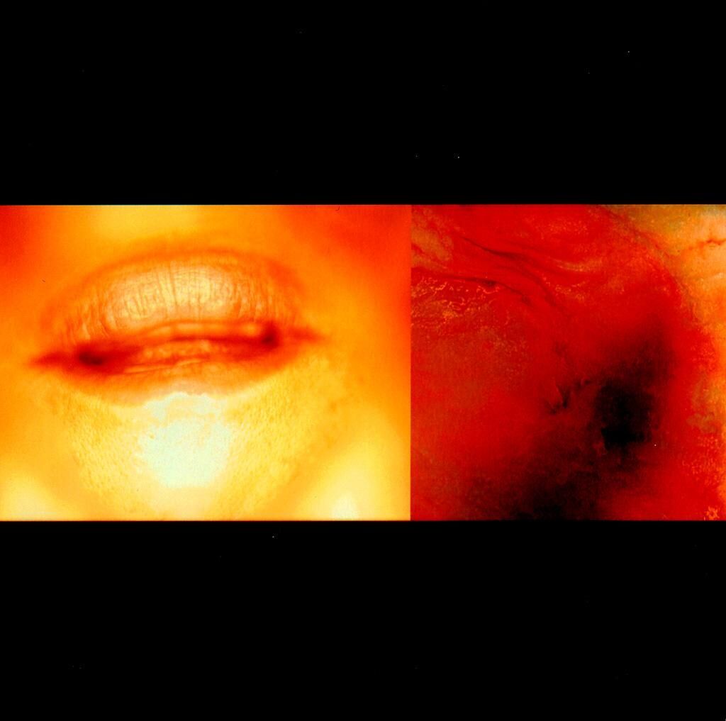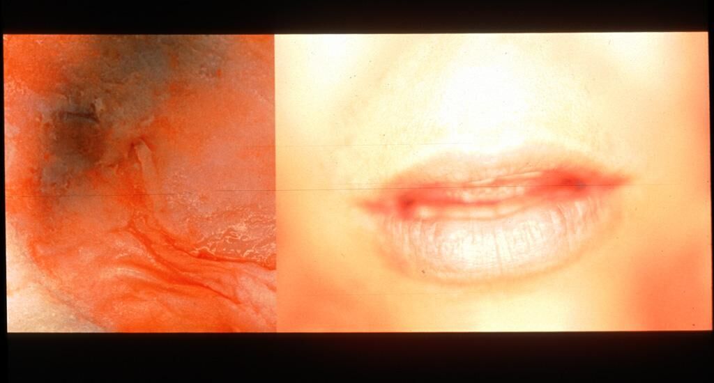 Bei dem Projekt “Schlaganfall/Sinnlichkeitsverdacht” handelt es sich um die Herstellung digital erweiterter Fotografien. Ursprung der Arbeiten sind Bilder von Mündern in Nahaufnahme sowie Großaufnahmen von fettem, weißem Speck. Die Münder werden aus dem Raum in eine Fläche (digital gedehnte Haut) versetzt. Sie werden übereinander geschichtet und halbtransparent miteinander kombiniert. Der Speck wird auf seine Textur reduziert – dem Bild “angedichtet”. Die Arbeit entstand im neuen Labor für digitale Bildbearbeitung. Gearbeitet wurde mit Scans hoher Auflösung, die fertigen Bilder wurden auf dem Belichter als Negative ausgegeben und auf Farbnegativpapier aufgezogen.