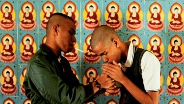 dunia tak akan mendengar, 2007, is the final part of the world won’t listen trilogy (2004-07) that saw Collins collaborate with fans of The Smiths across three continents to create a karaoke video version of the 1987 eponymous compilation album. The artist initially re-recorded the entire album, song by song, with musicians in Bogotá (Colombia) and created a karaoke machine that was toured to subsequent far-flung locations, including Istanbul (Turkey), Jakarta and Bandung in Indonesia, where this particular installment was filmed. Resulting in a series of tender and emotional portraits, the work is a study on the mediation and transformative power of popular music across cultures, languages and geographies. Similarly the meaning of style, 2011,a short 16 mm film transferred to video, was produced with a group of young anti-fascist skinheads in Penang in Malaysia. Here Collins looks at the local adoption of skinhead subculture, originally a black and white working class movement, in the form of a cinematic reverie set to an original soundtrack by Welsh musician Gruff Rhys and North Wales surf band Y Niwl. Incorporating a rich collage of symbols and architecture from East and West, the film provides a delicate frame for reflection on the relationship between British colonial history, complex racial politics, and contemporary cultural styles in this region of the world.