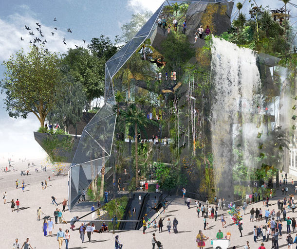 “Humboldt Volcano” is an extension to the Berlin “Humboldt Forum” building with a large winter garden pavilion housing a vertical forest in the center of Berlin and a participatory media concept. “Humboldt Volcano” as a combined physical and media space opens the museum to the public and the city, fusing nature, architecture, media and technology, creating NatureTecture.