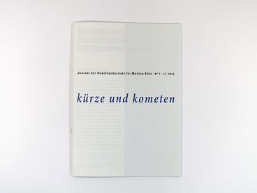Das Journal der Kunsthochschule für Medien Köln erscheint mehrmals pro Jahr und greift in Text- und Bild-Essays, Kolumnen, Glossen, künstlerischen Beiträgen und poetischen Reflexionen aktuelle Entwicklungen, Diskurse und Debatten auf. Es beschäftigt sich – über das im Feld der Künste und der Wissenschaften Auffallende hinaus – mit politischen, philosophischen und ästhetischen Fragen, aber auch mit technischen, medialen und gesamtgesellschaftlichen Entwicklungen.
