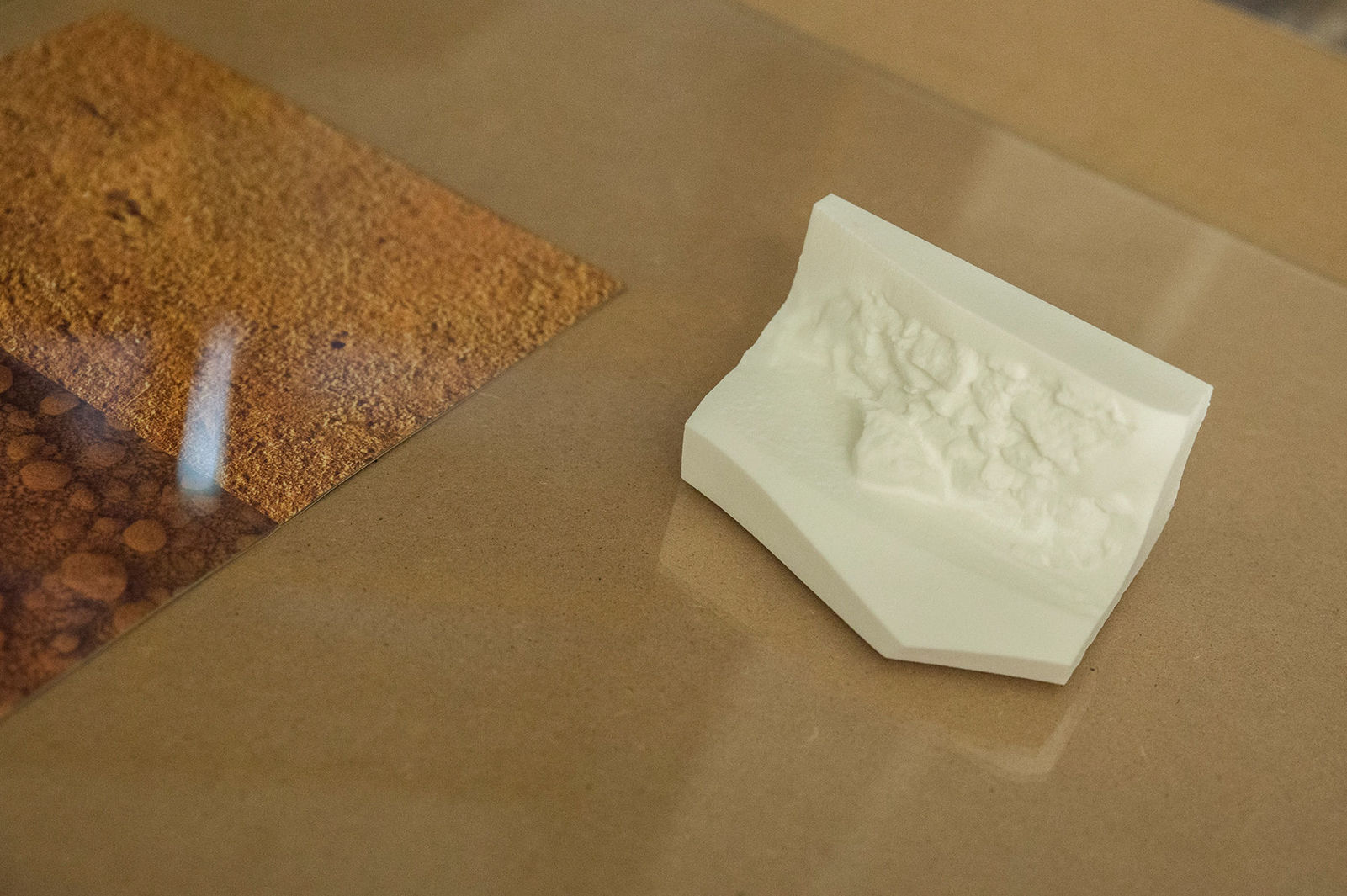 Die Ausstellung "Bridge" gewährt Einblick in die Sammlungen (extra)terrestrischer Forschungen der letzten Jahre. Nieves de la Fuente Gutiérrez zeigt in ihren Untersuchungen Materialien und Zeugnisse aus der Beschäftigung mit vergangenen und zukünftigen Orten, als Landschaften geprägt durch transformativ-terrestrische Handlungen, als Erinnerungen wiedergefunden in eigenen Bildwelten.