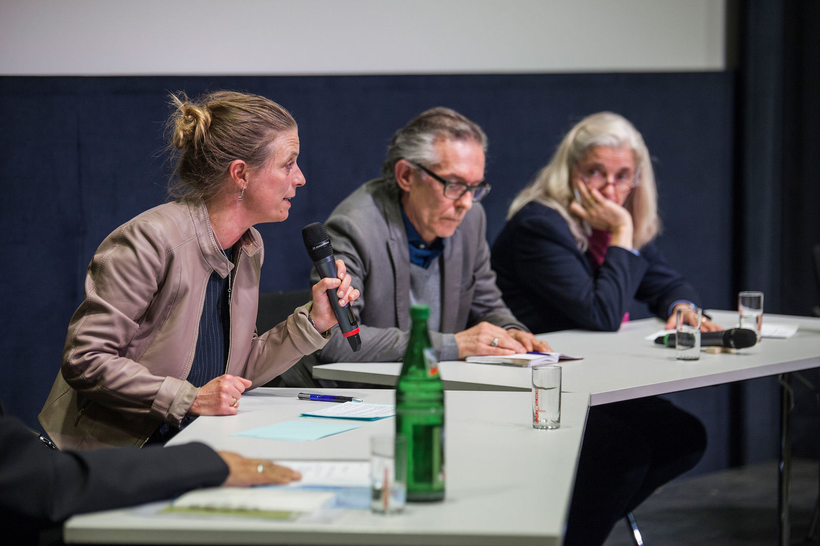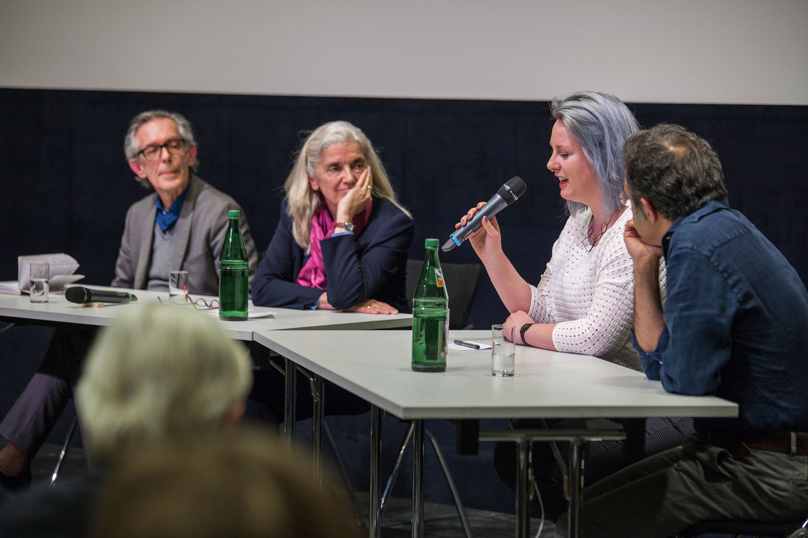 Diskussion mit Isabel Pfeiffer-Poensgen (Ministerin für Kultur und Wissenschaft NRW), Sandra Kegel (FAZ), den Autoren und Professoren Ulrich Peltzer und Navid Kermani sowie weiteren Lehrenden der Kunsthochschule für Medien Köln (KHM). Moderation: Hans Ulrich Reck (Rektor der KHM)