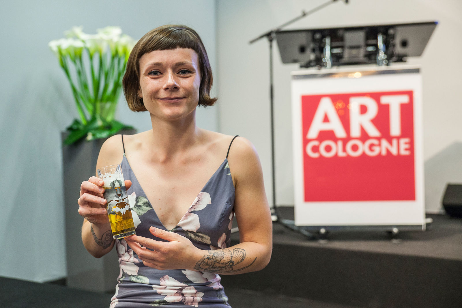 Bereits zum siebten Mal gestaltet eine Nachwuchskünstlerin der Kunsthochschule für Medien Köln (KHM) im Rahmen eines Wettbewerbs unter Studierenden exklusiv zur ART COLOGNE (19. bis 22. April 2018) eine Kölschstange in limitierter Auflage. Aus einer enormen Vielfalt an Entwürfen wählte eine Fachjury die Gaffel-Kölschglas-Edition 2018 aus. Die Kölner Privatbrauerei Gaffel stiftet das Preisgeld in Höhe von 1.111 Euro.