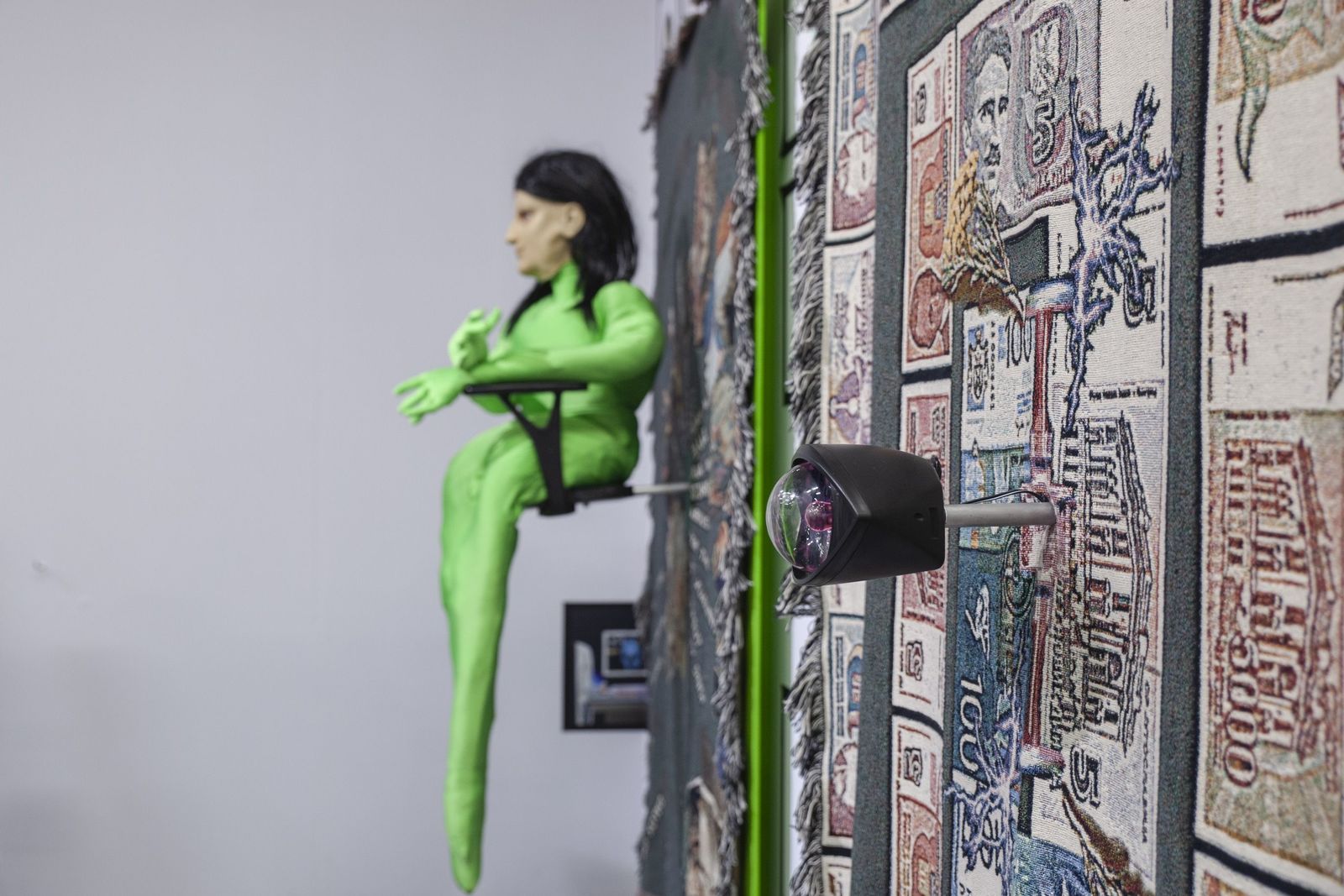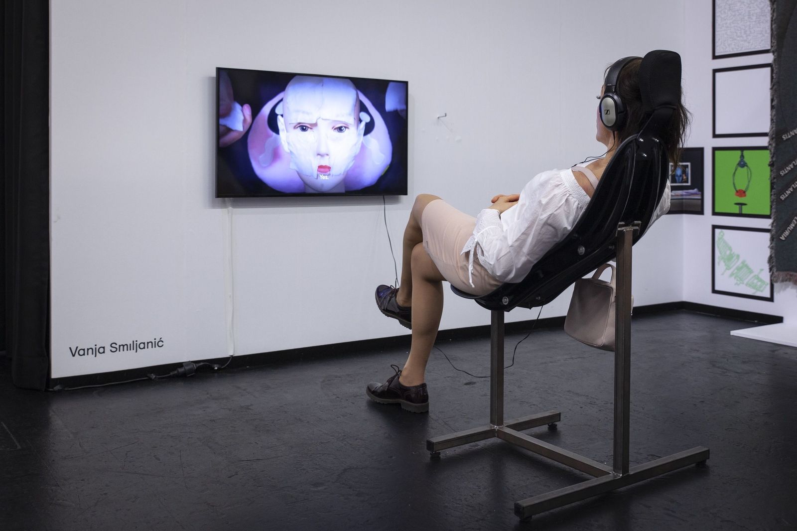 Vanja Smiljanić vermittelt in ihrem künstlerischen Werk zwischen verschiedenen, oftmals stark voneinander abgegrenzten Regimen und erforscht Methoden des Geschichtenerzählens. Seit 2017 liegt der Schwerpunkt ihrer künstlerischen Forschung auf der spirituellen UFO-Bewegung Unarius Academy of Science, die 1954 von Ruth und Ernest Norman in El Cajon, Kalifornien, gegründet wurde. Verschiedene Erzählstränge werden in installativen Elementen – Video, Teppiche und einer Cosplay-Puppe – miteinander verknüpft, darunter eine Videoarbeit über ein psychodramatisches Spiel, bei dem die Protagonist*innen gemeinsam in die von der Unarius-Kosmologie propagierte hochentwickelte, techno-theokratische antike Gesellschaft Orion zurückreisen.