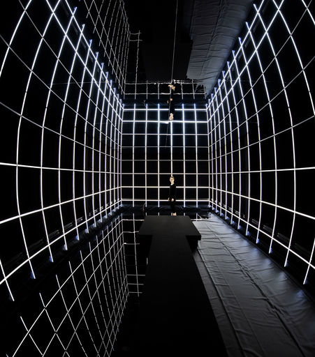 Ihre Installation „Light High“ ist ein bühnenartiger Raum, der durch eine verspiegelte Decke und einem Boden aus Wasser in seinen Dimensionen multipliziert und illusionistisch überhöht wird. Gitterförmig angebrachte Lichtelemente werden in einer abwechslungsreichen Choreografie zum Einsatz gebracht, so dass sich unterschiedliche Muster und Effekte ergeben. Über einen Steg betreten die Besucher*innen die Bühne und können so selbst zu Akteur*innen des Kunstwerks werden.